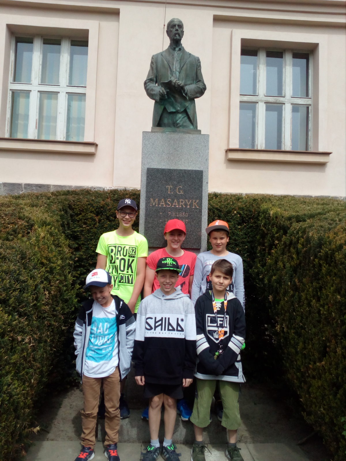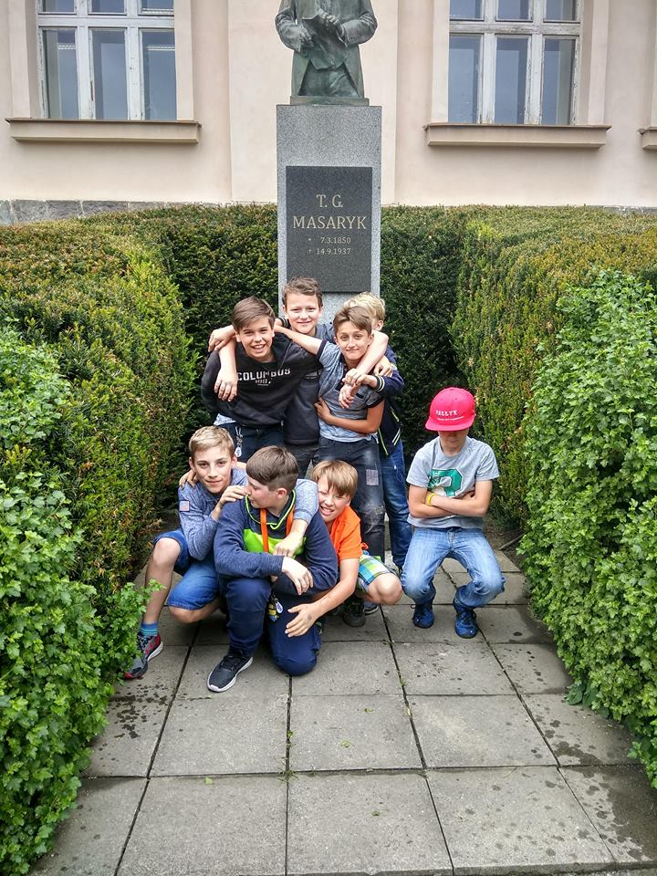 V rámci 100. výročí od vzniku ČSR si žáci 5. ročníků připomněli důležité historické okamžiky, které se týkaly Českého Krumlova. Protože se v hodinách vlastivědy seznámili s obdobím 1. světové války, vznikem ČSR a prvním prezidentem T. G. Masarykem a navštívili místa, která se vztahují k těmto událostem. V hodinách si povídali o založení naší základní školy a slavnostním odhalení busty T. G. Masaryka a v městských sadech si prohlédli místo, kde byl roku 1930 vybudován Památník obětem 1. sv. války, který byl v 80-tých letech nahrazen Památníkem bojů a vítězství nad fašismem.