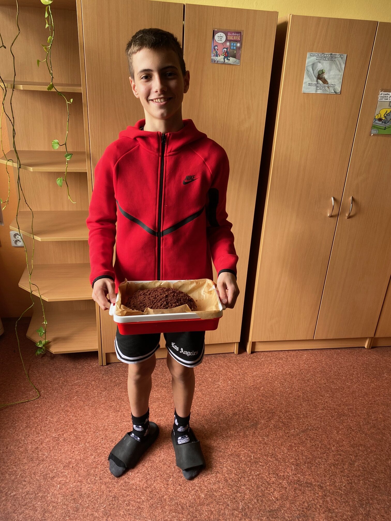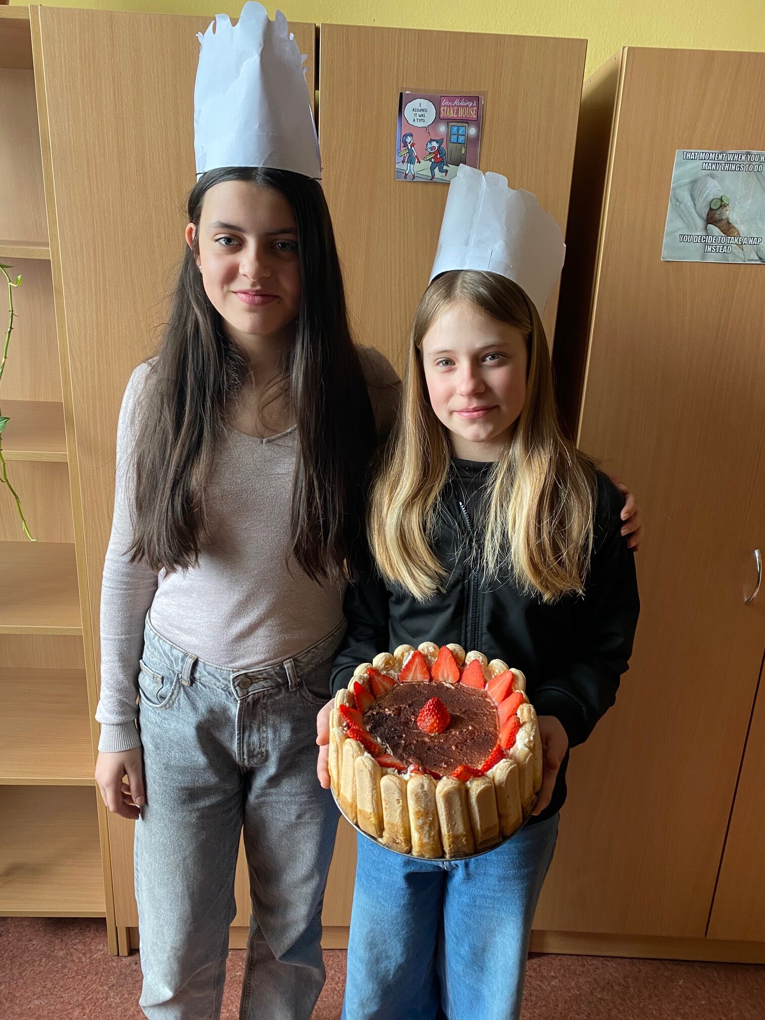 Jako bonusový dobrovolný úkol mohli žáci natočit video z přípravy svého pokrmu, ve kterém celý postup komentovali v angličtině. Fantazii se meze nekladly a někteří se úkolu zhostili jako profesionální vlogeři a cukráři. 🍰🎥