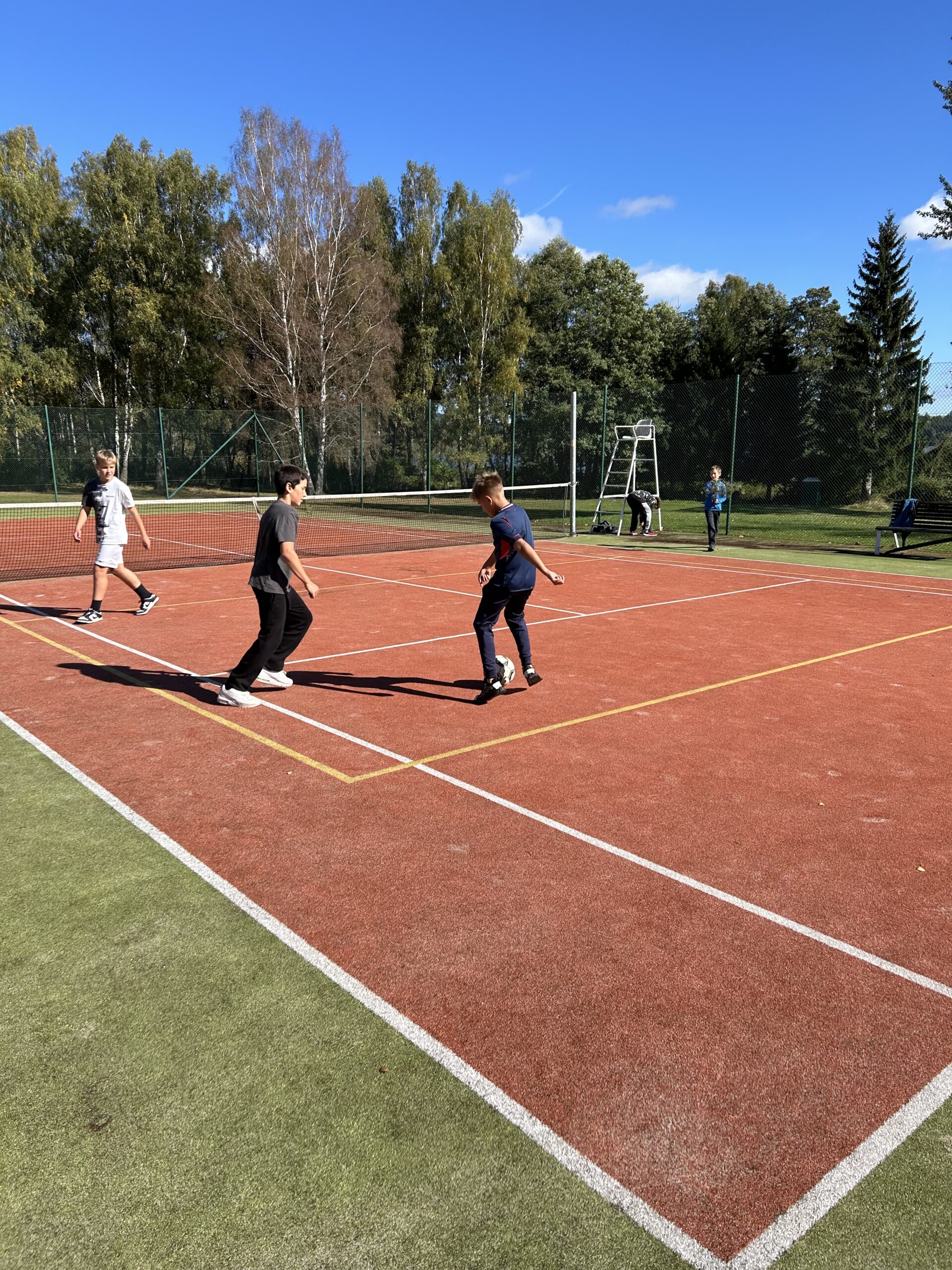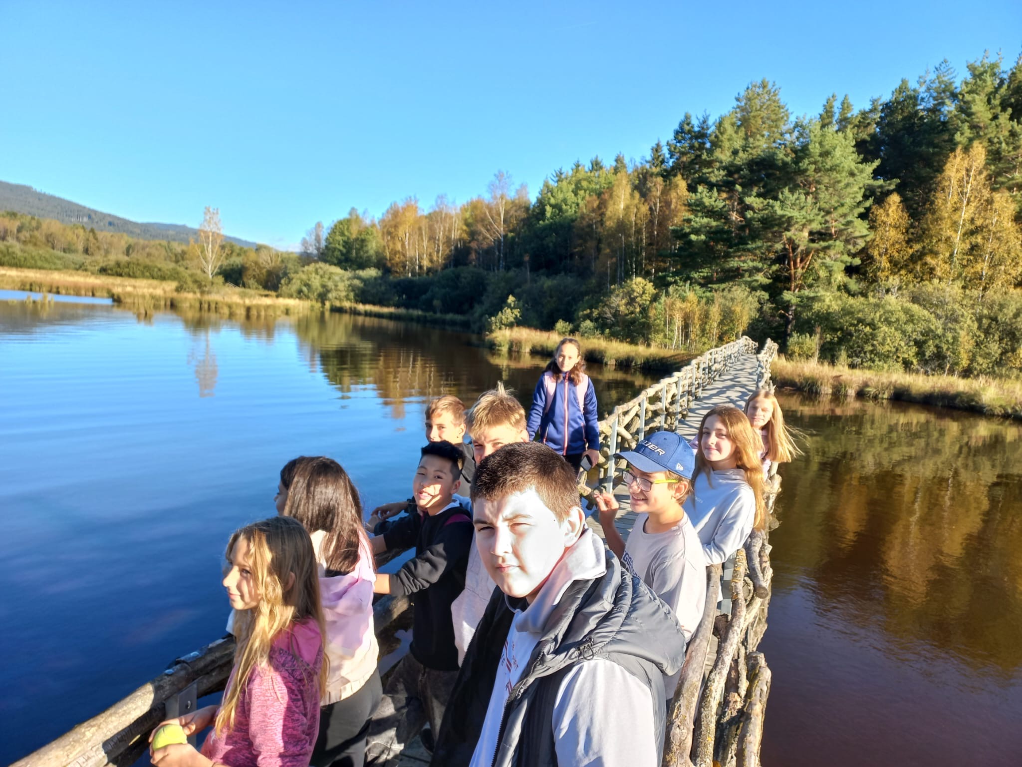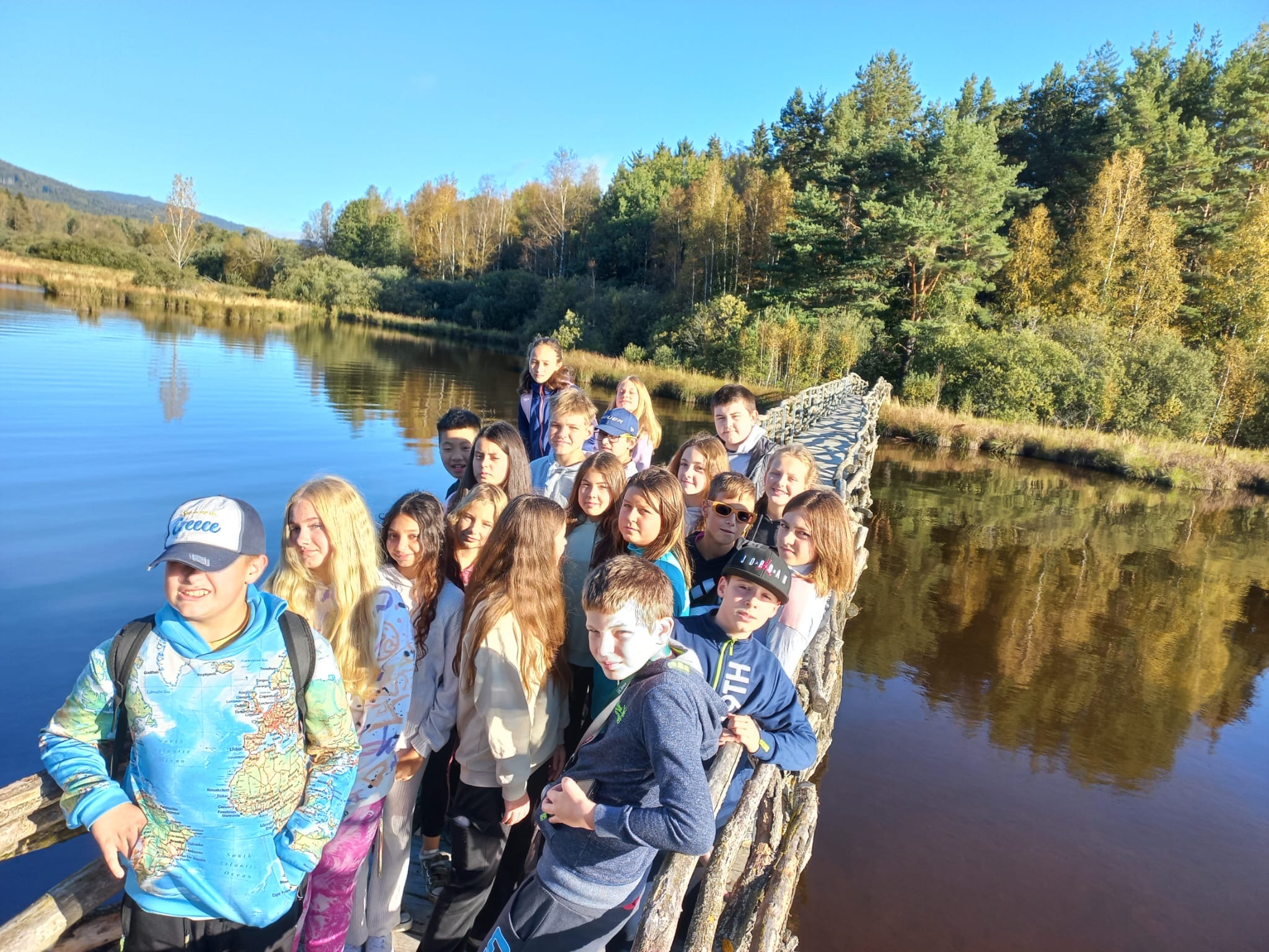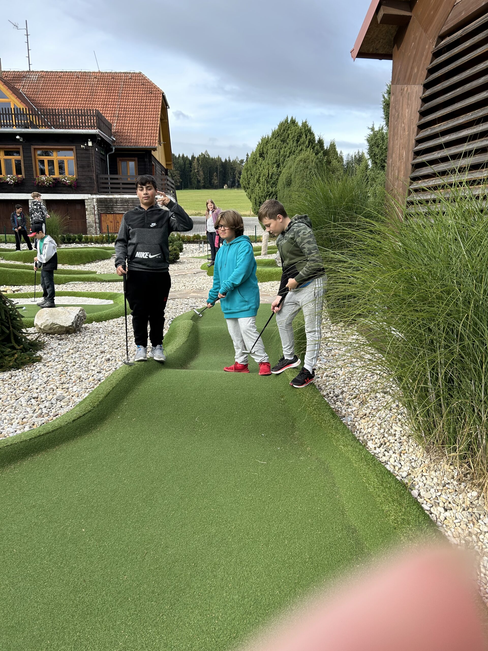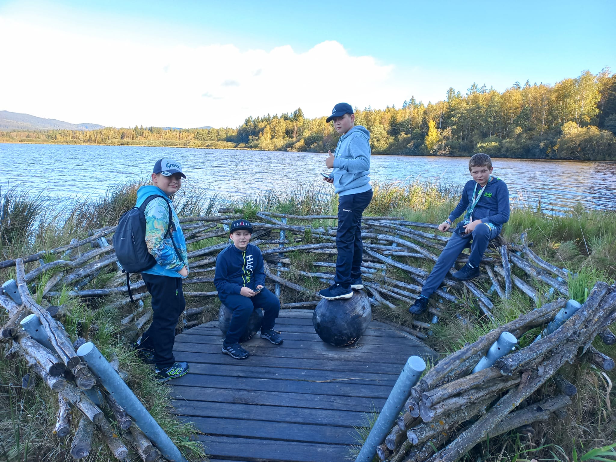 Cesta vlakem, ubytování v chatě Šumava, skvělé jídlo, poznávací aktivity připravené organizací Spirála, fotbal, nohejbal, minigolf, procházka okolo rybníka Olšina, to vše patří mezi zážitky žáků.