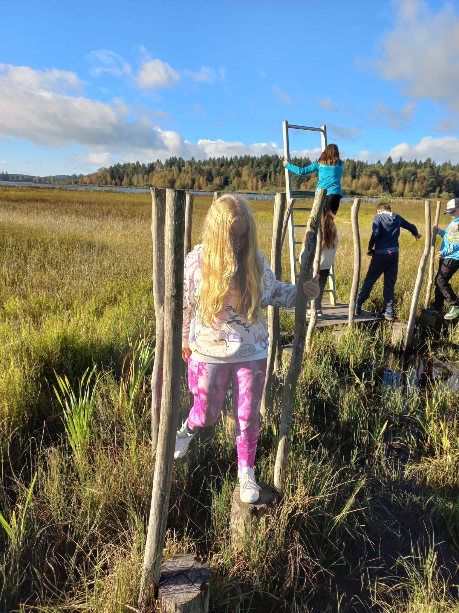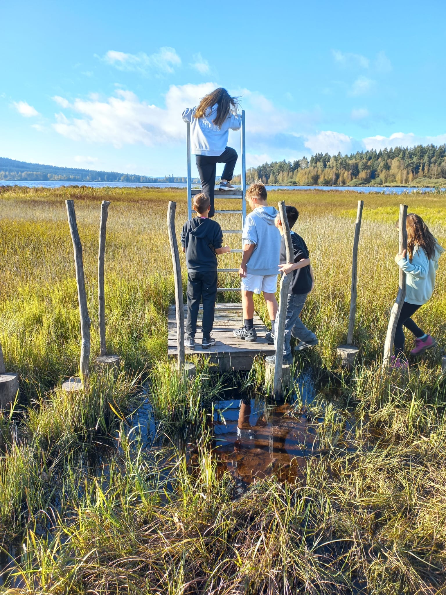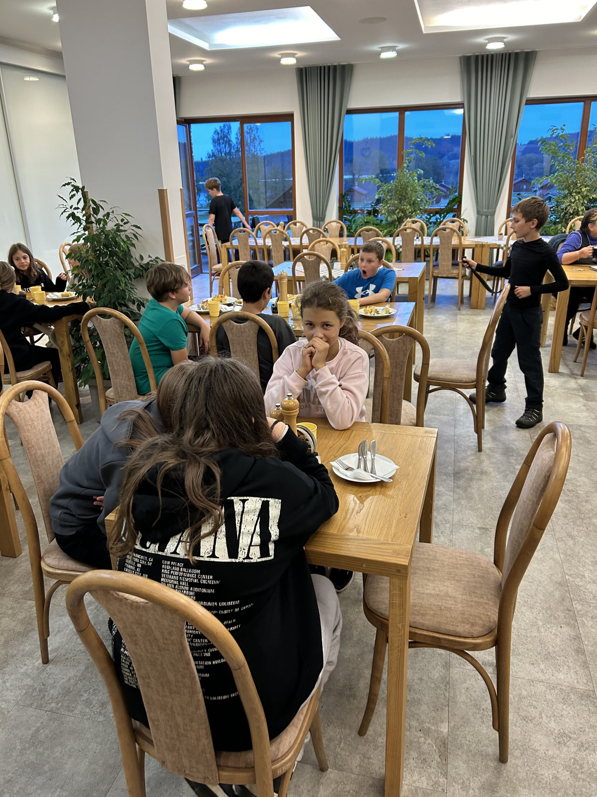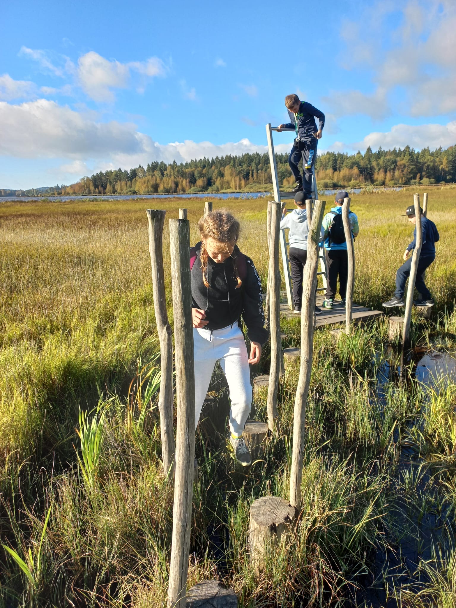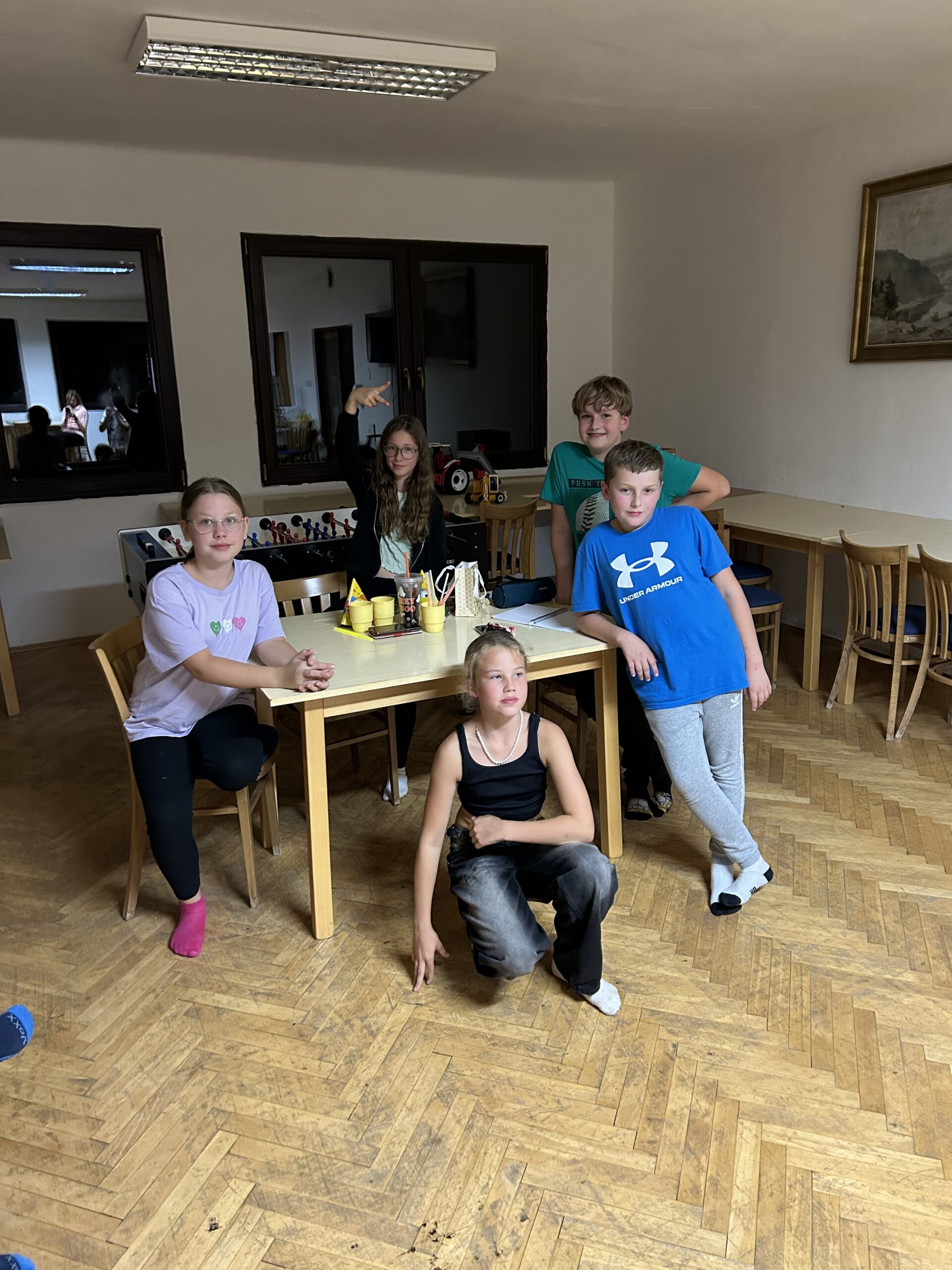 Cesta vlakem, ubytování v chatě Šumava, skvělé jídlo, poznávací aktivity připravené organizací Spirála, fotbal, nohejbal, minigolf, procházka okolo rybníka Olšina, to vše patří mezi zážitky žáků.