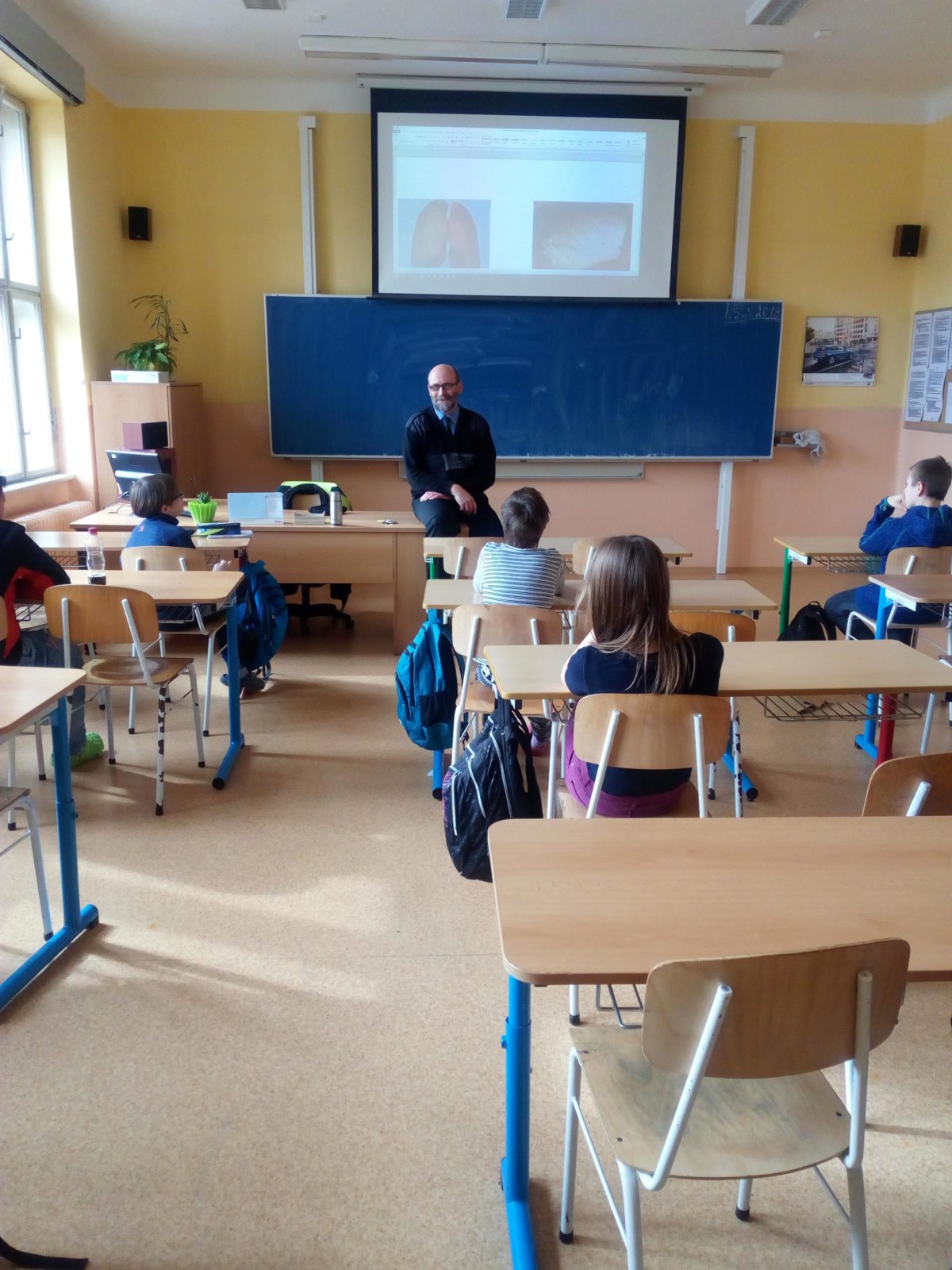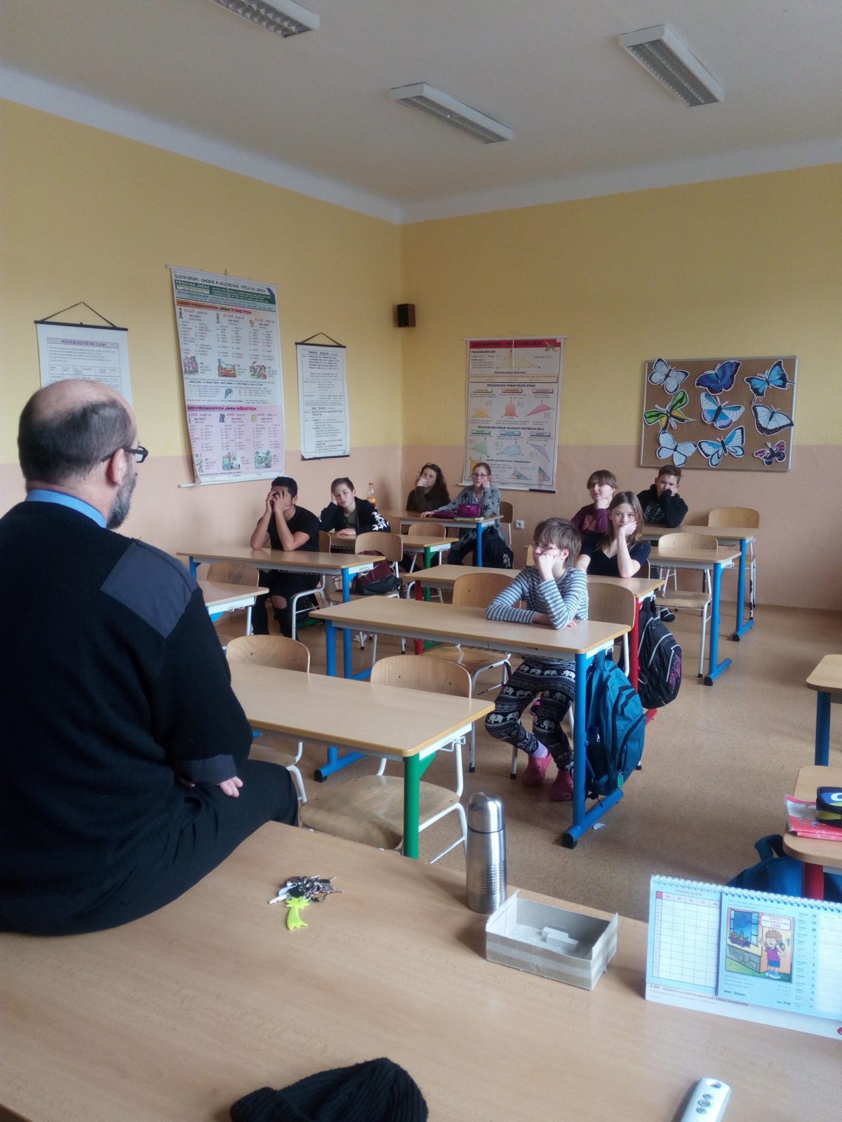 V rámci prevence rizikového chování proběhly na naší škole besedy na různá témata. Pan P. Pípal z Městské policie v Českém Krumlově seznámil žáky 6. ročníků s riziky kouření a závislostí, v 9. ročnících s žáky besedoval na téma SEKTY.