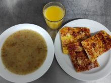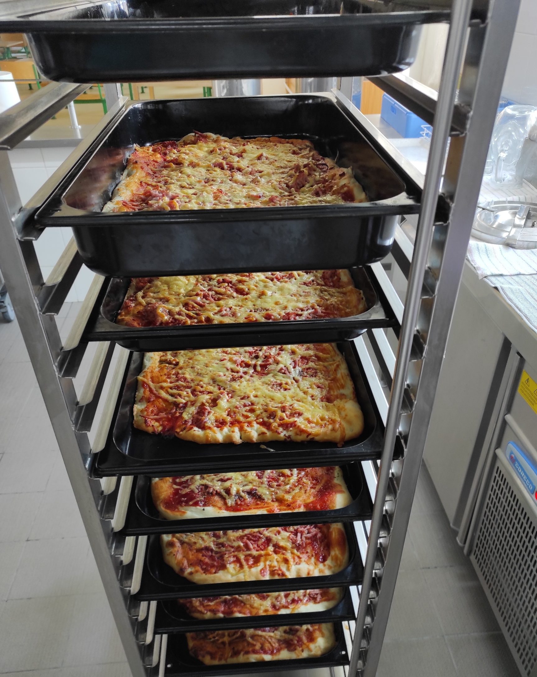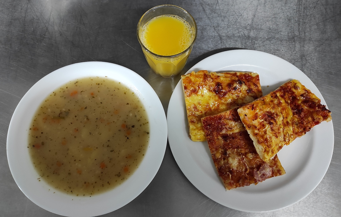 Dnes k Mezinárodnímu dni dětí byla k obědu jogurtová pizza se šunkou a sýrem. Předcházel tomu výběr, kdy si sami děti zvolily oběd, který by si přály mít na tento významný den. Volba byla mezi pizzou, langošem a lívancem. A vyhrála pizza.