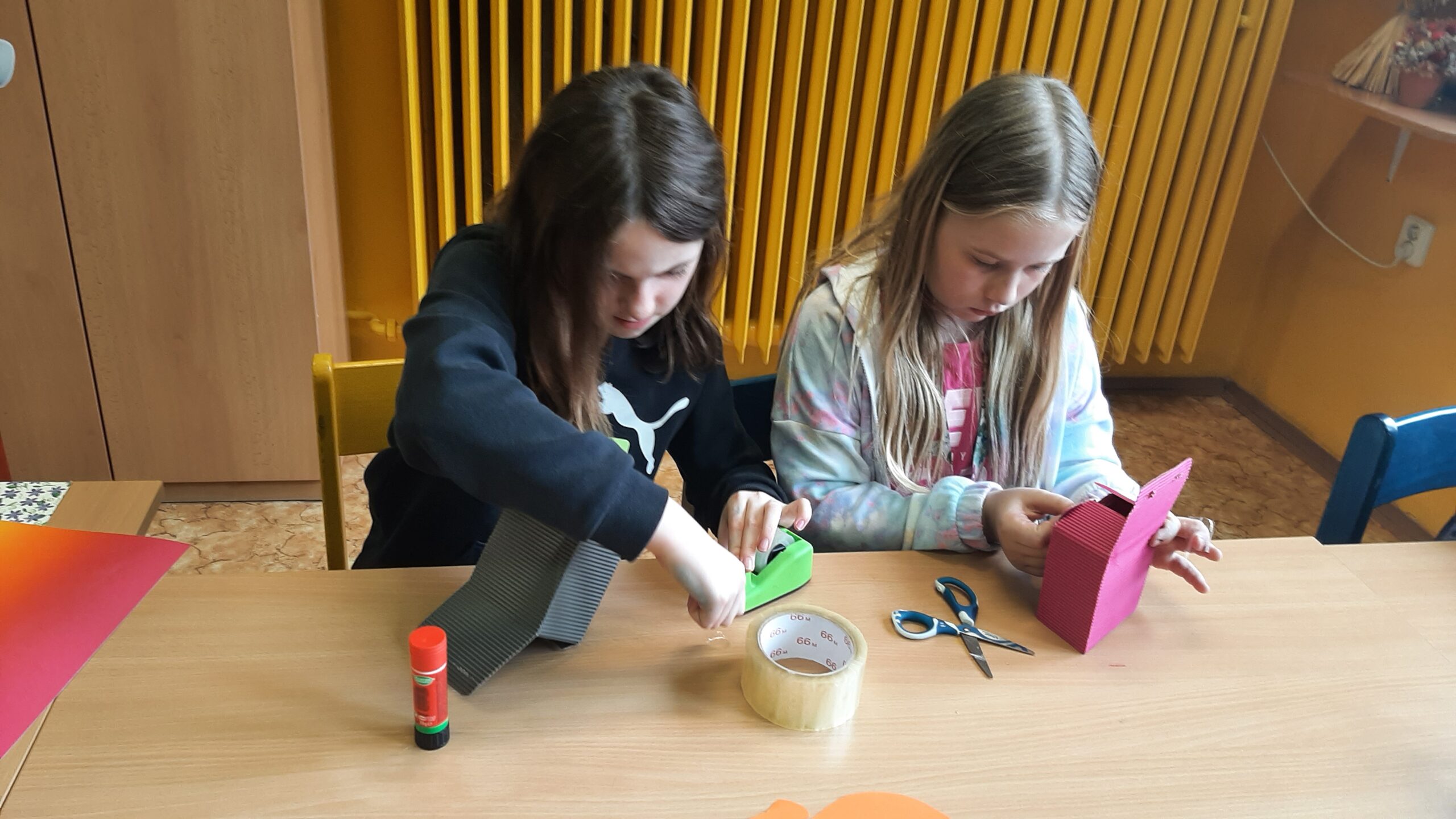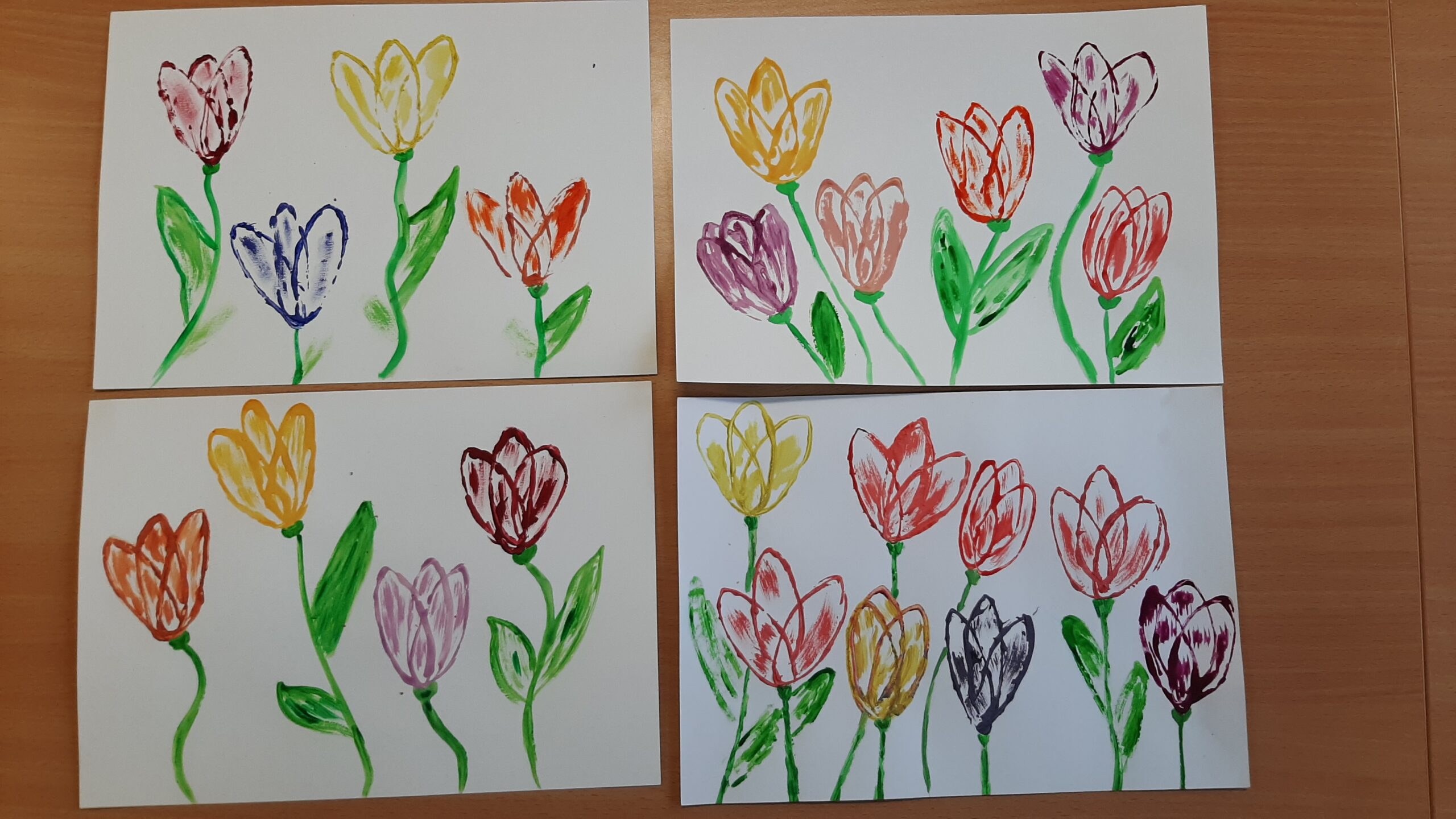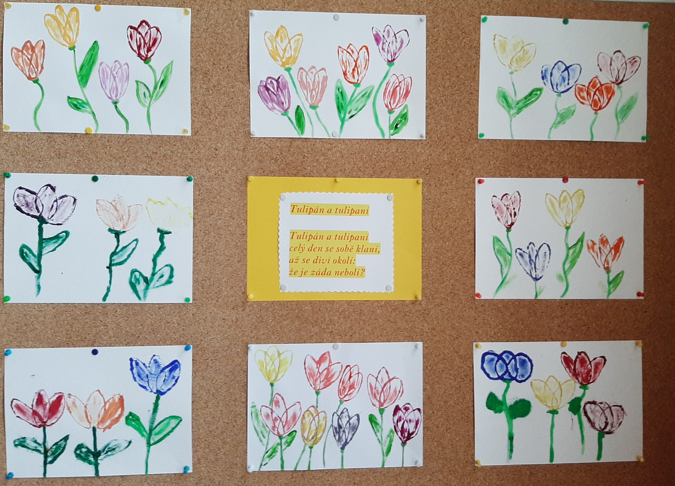 Jarním obdobím nás provázel často déšť, tak jsme s dětmi hodně tvořili. Nástěnky, jarní výzdobu v oddělení, dárečky k zápisu pro budoucí prvňáčky, jarní tulipány a přáníčka ke Dni matek. Samozřejmě když nepršelo, vyběhli jsme na školní hřiště a alespoň na chvíli jsme byli na čerstvém vzduchu.