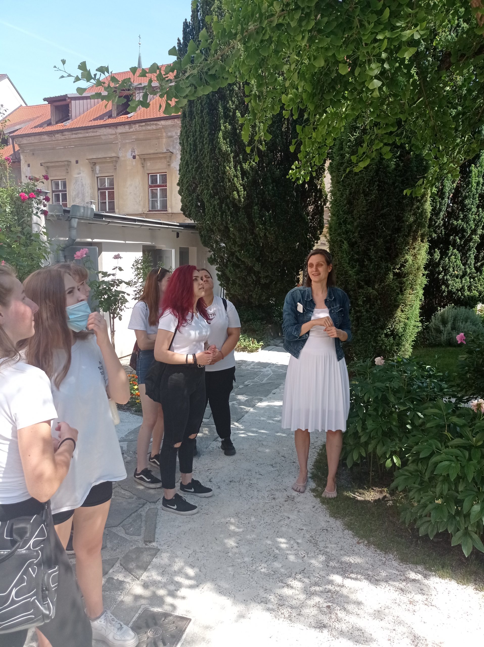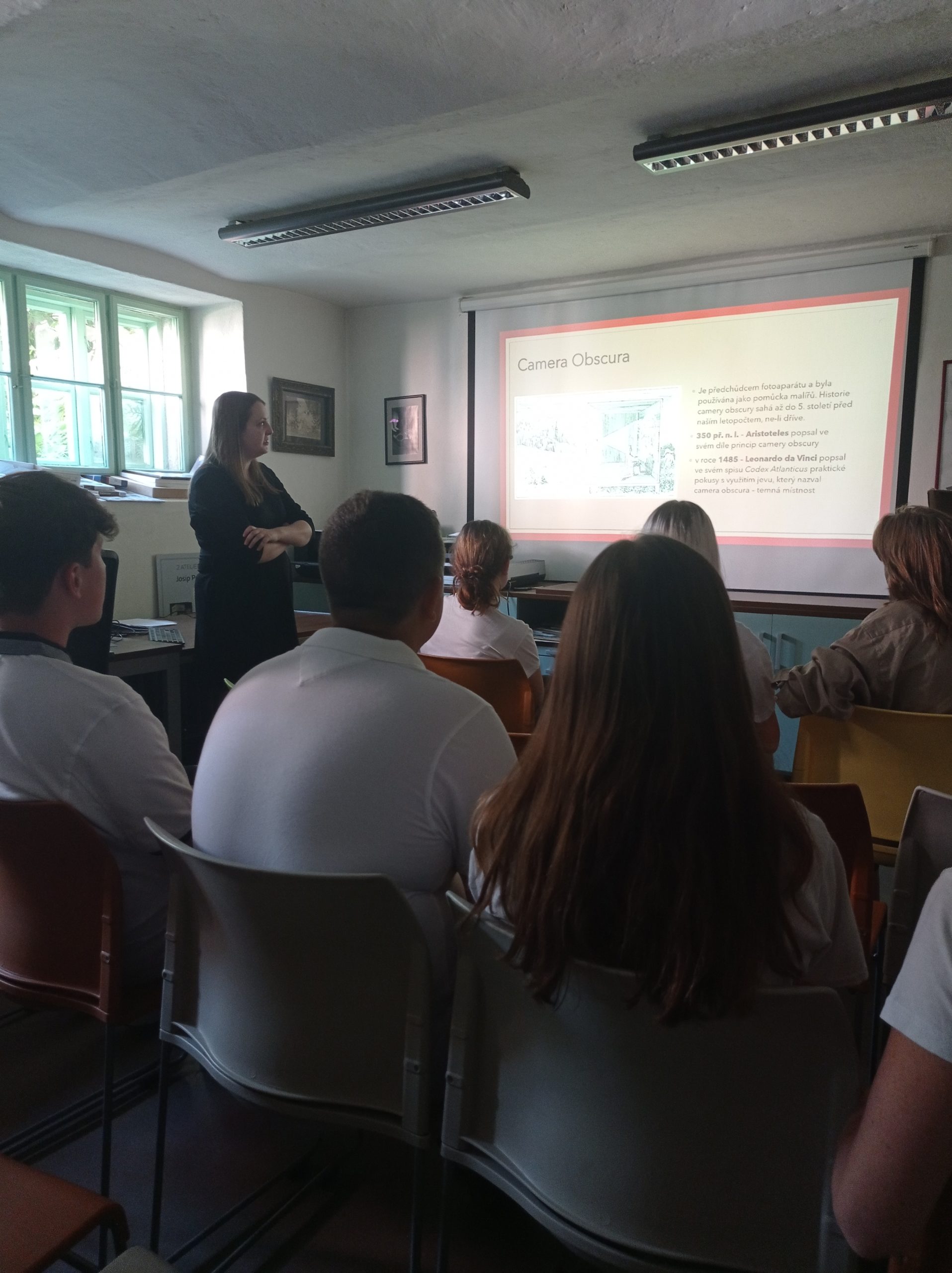 Den před slavnostním předáváním vysvědčení si žáci 9. A vyšli na vycházkový okruh Křížová hora. Procházka nás dovedla k baroknímu poutnímu areálu na Křížové hoře (619 m n. m.) nad Českým Krumlovem. Po výstupu ve velkém vedru nám byl odměnou nádherný pohled na Český Krumlov a blízkou Kleť. Po sestupu nás již čekali v Museu Fotoateliér Seidel, kde jsme se v rámci projektu pro základní školy dozvěděli, jak se fotografovalo před 100 lety. Nechyběl ani přehled techniky fotografování. Celá třída se společně vyfotografovala v dobových kostýmech. Na závěr putování jsme se odměnili zmrzlinovým pohárkem.