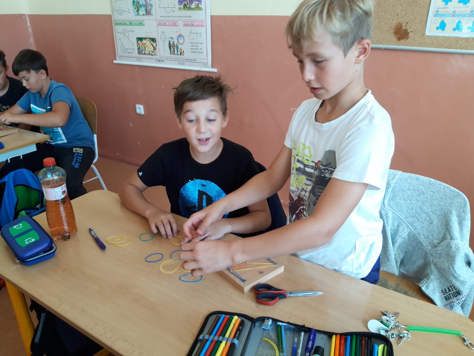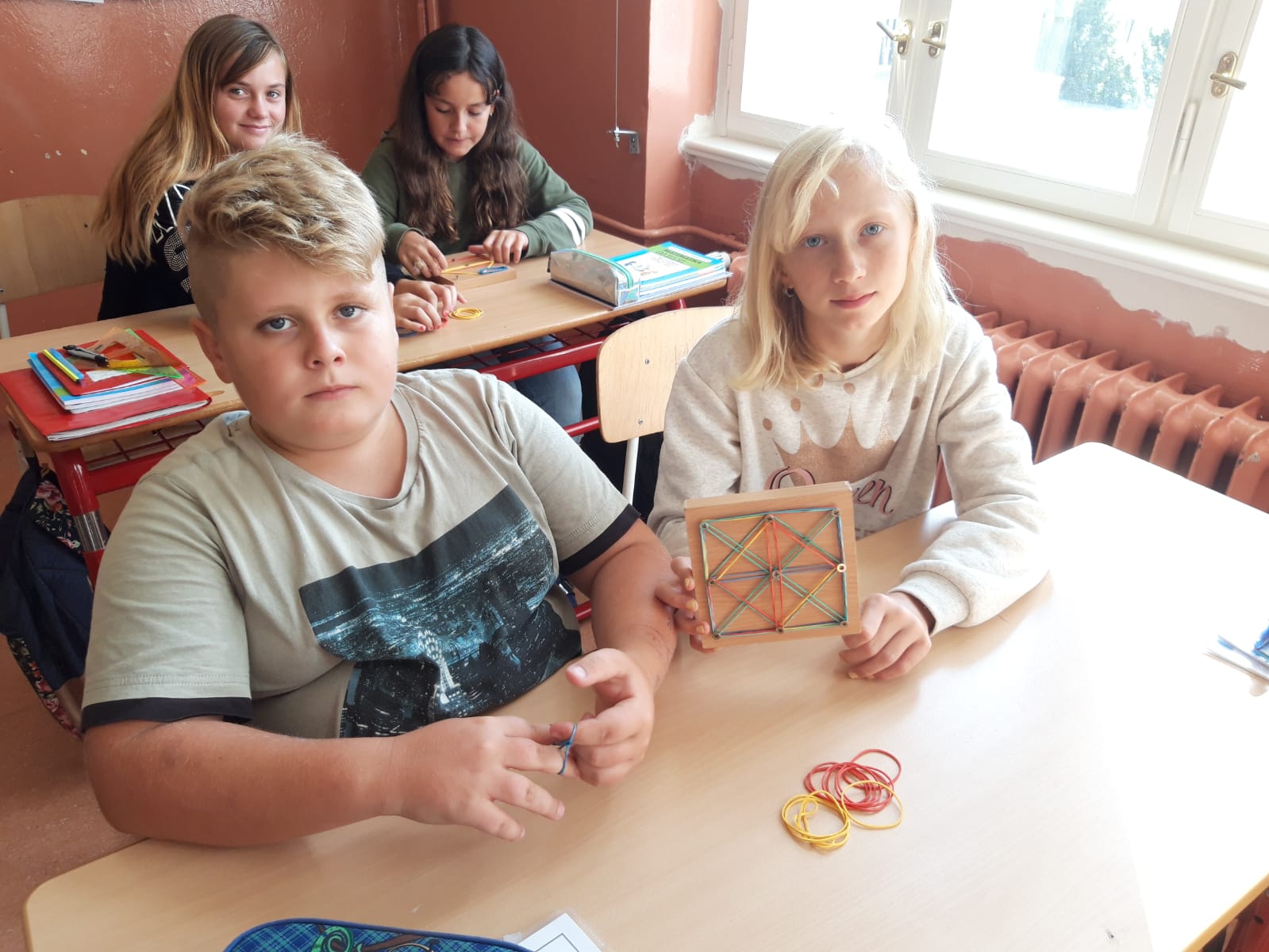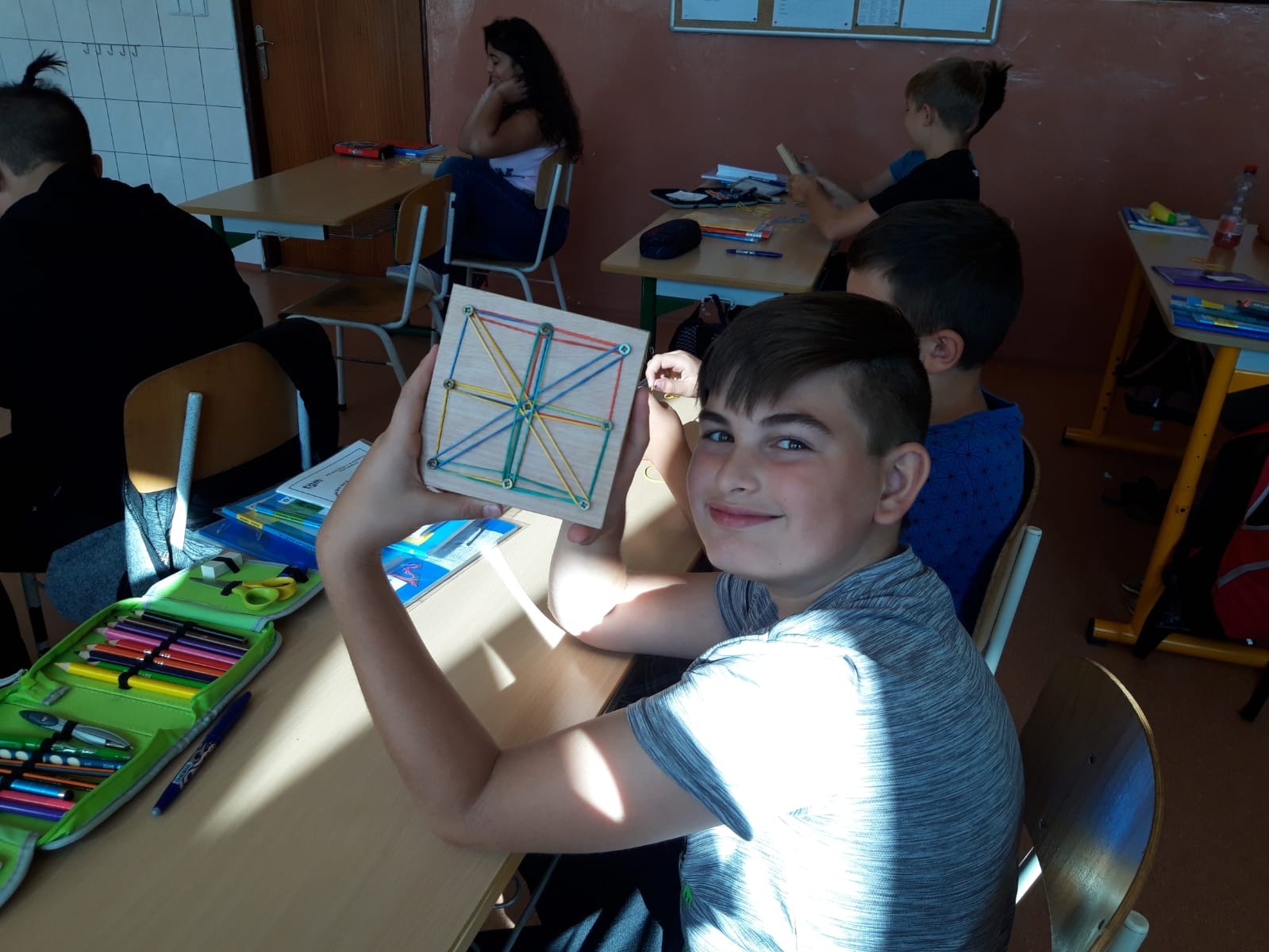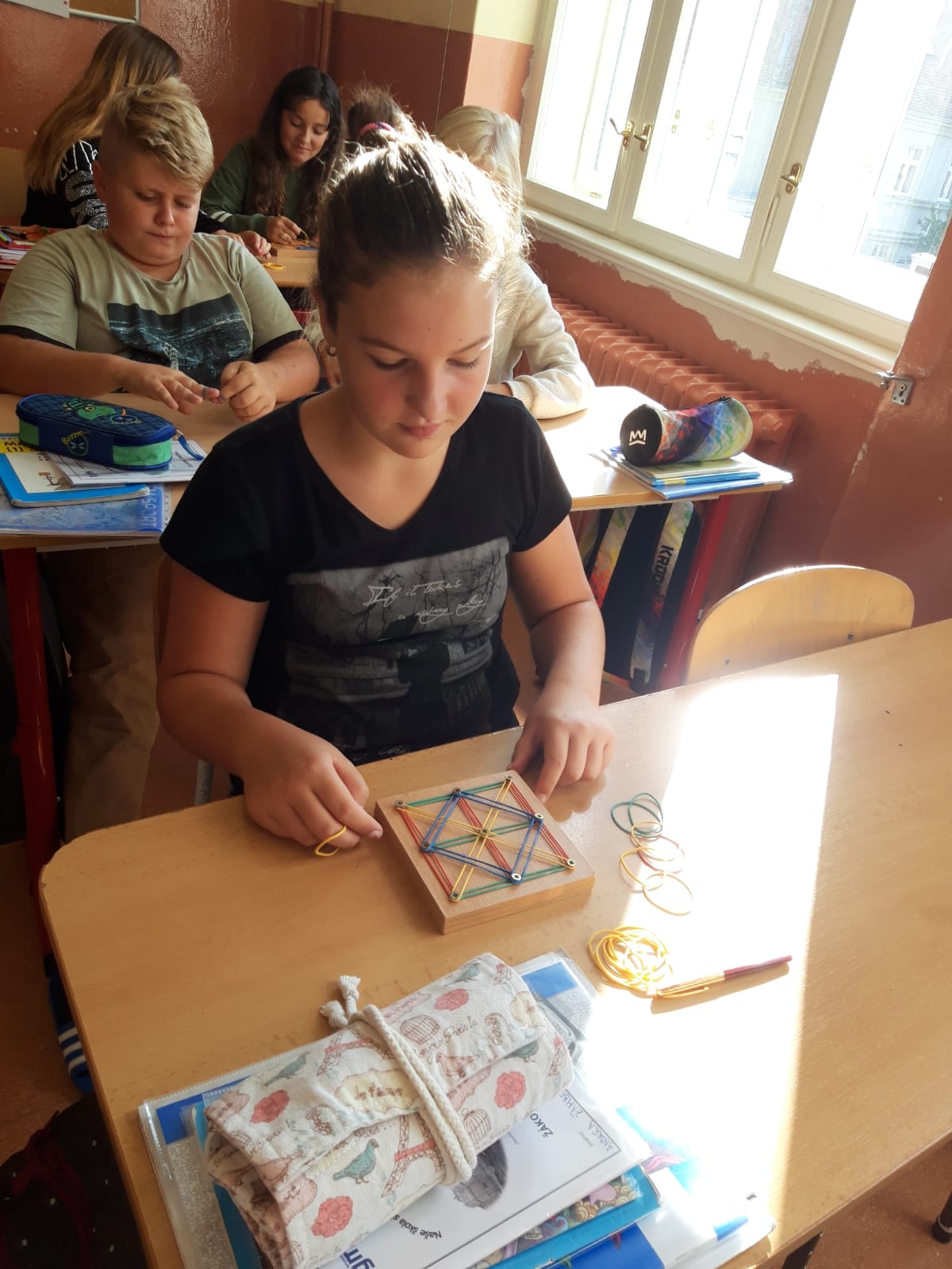 Když jsme si v hodině matematiky ve třídě 6. B zopakovali rovinné útvary pomocí geoboardů, neodolali jsme, a vznikla i krásná výtvarná díla…