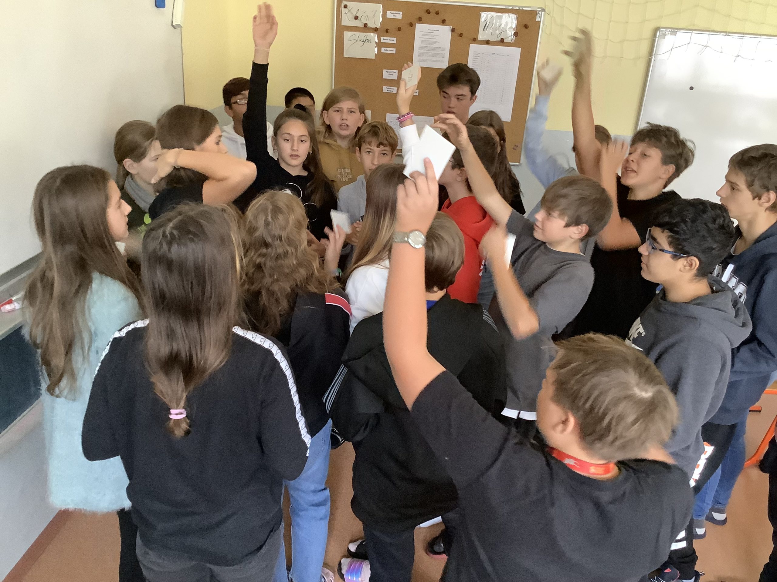 Seřadit celá čísla na živou číselnou osu není na první pokus nic snadného, je to totiž nejen o matematice, ale i o spolupráci a komunikaci. Sedmáci to ale zvládli 👍.