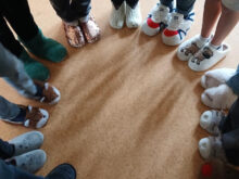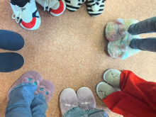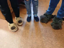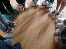 Žáci i učitelé přišli do školy v barevných papučích, pantoflích a bačkorách, čímž vyjádřili podporu myšlence důstojného umírání v domácím prostředí.