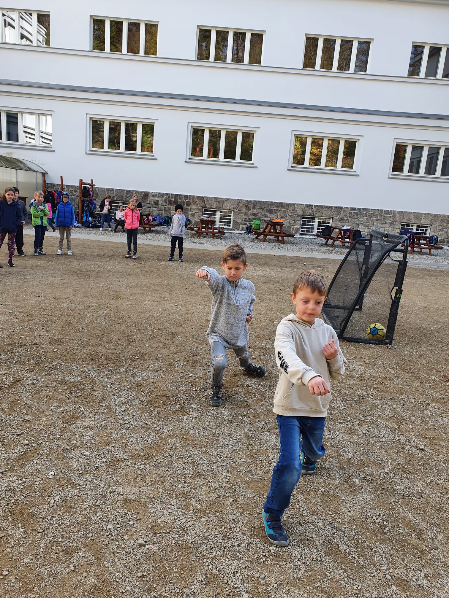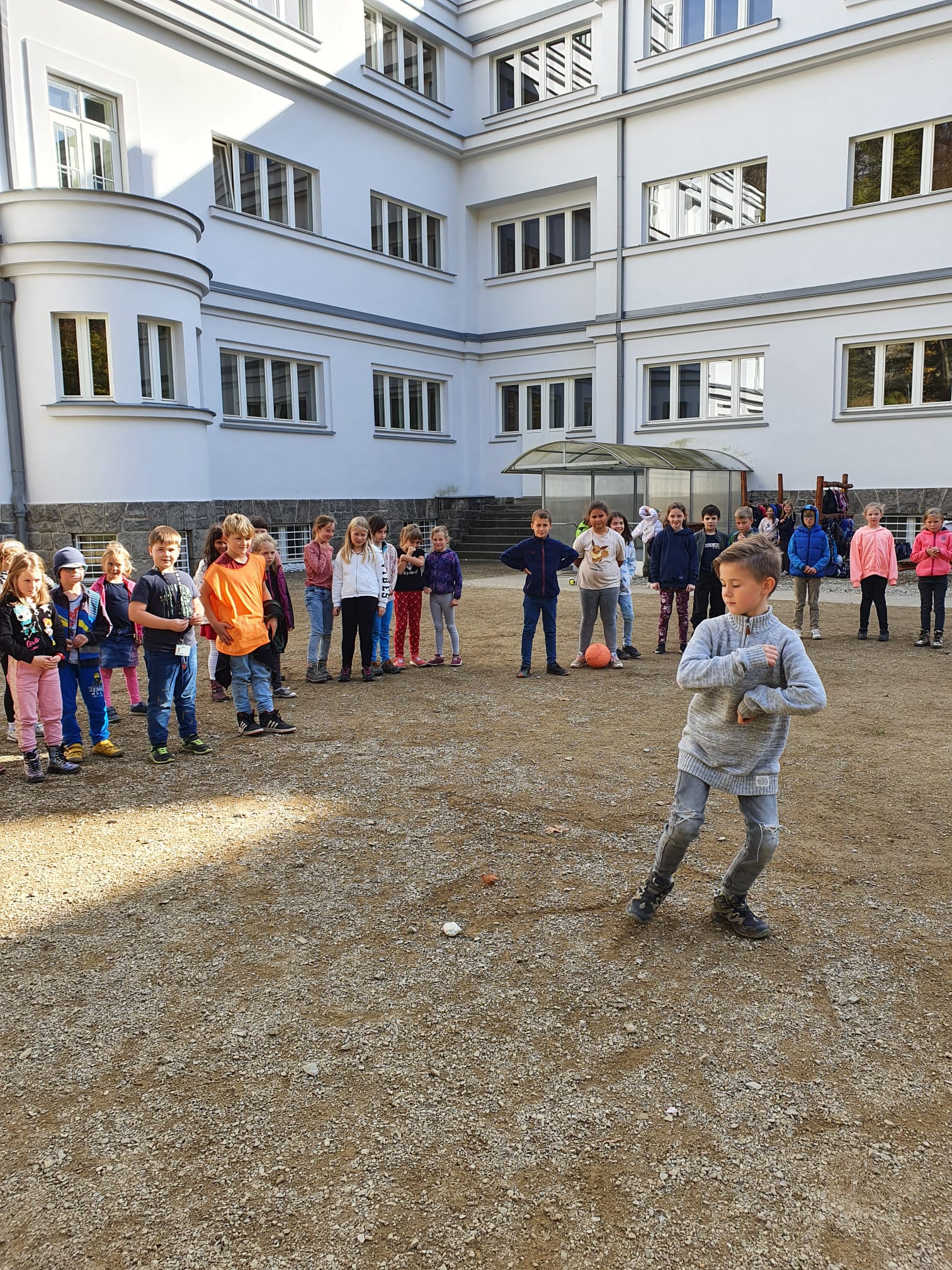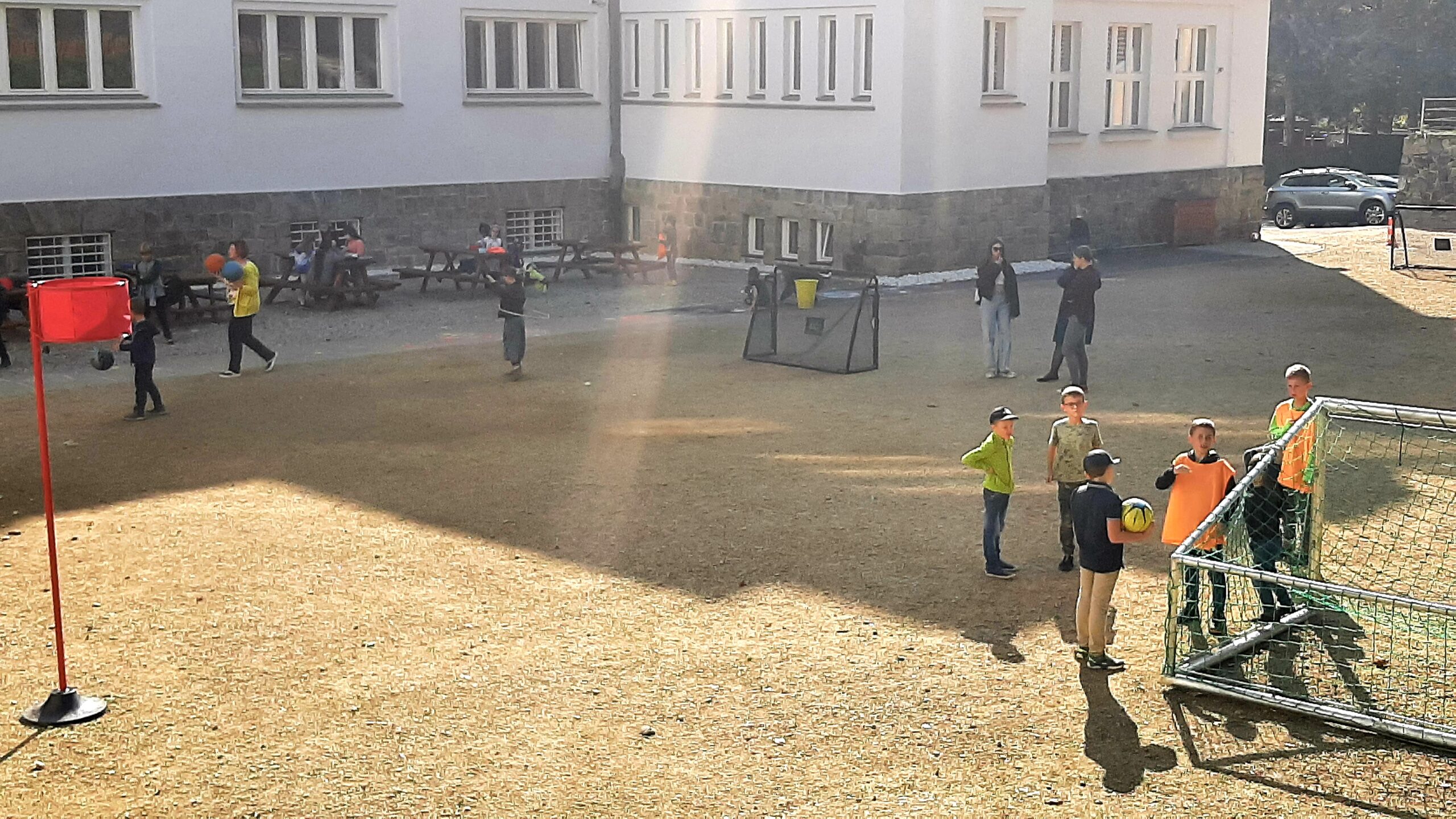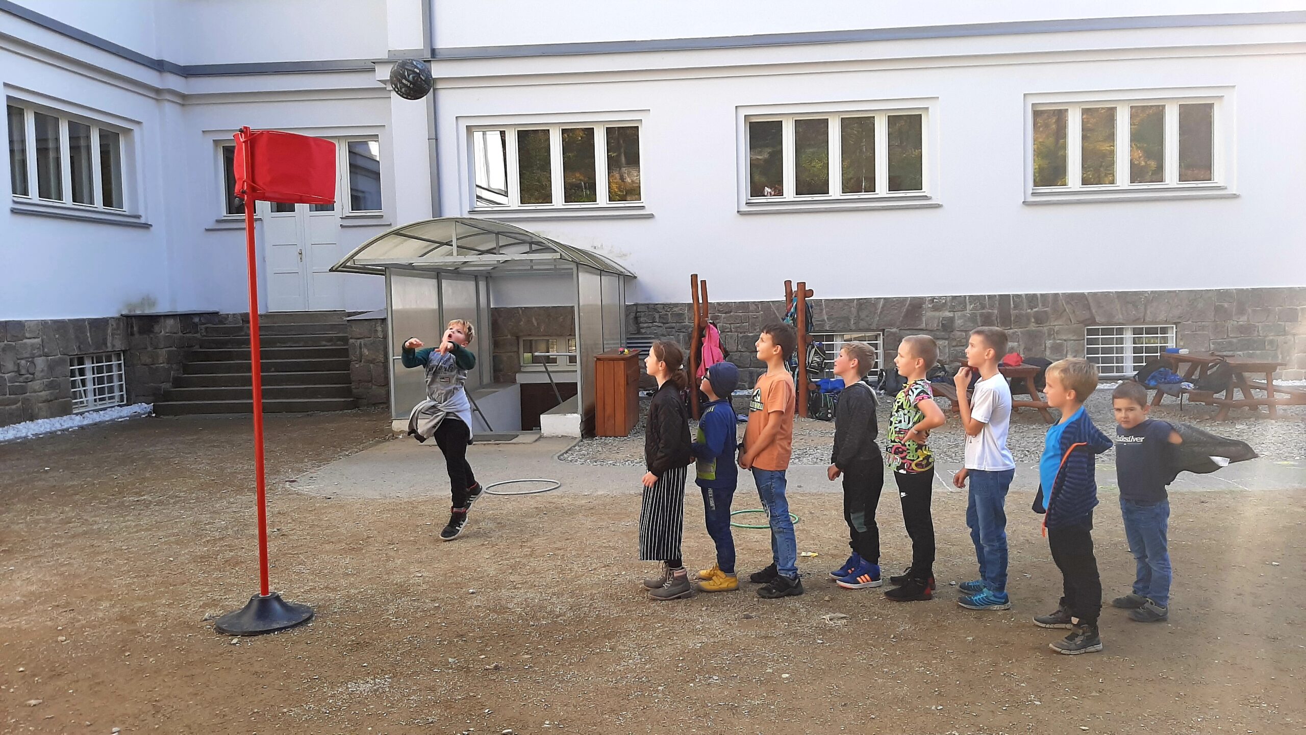 Krásné podzimní počasí nám umožnilo trávit čas na školním hřišti. Děti ze všech oddělení mají každý den nabídnuty sportovní aktivity, které si mohou vyzkoušet. Podzim na hřišti v areálu školy jsme si všichni užili.