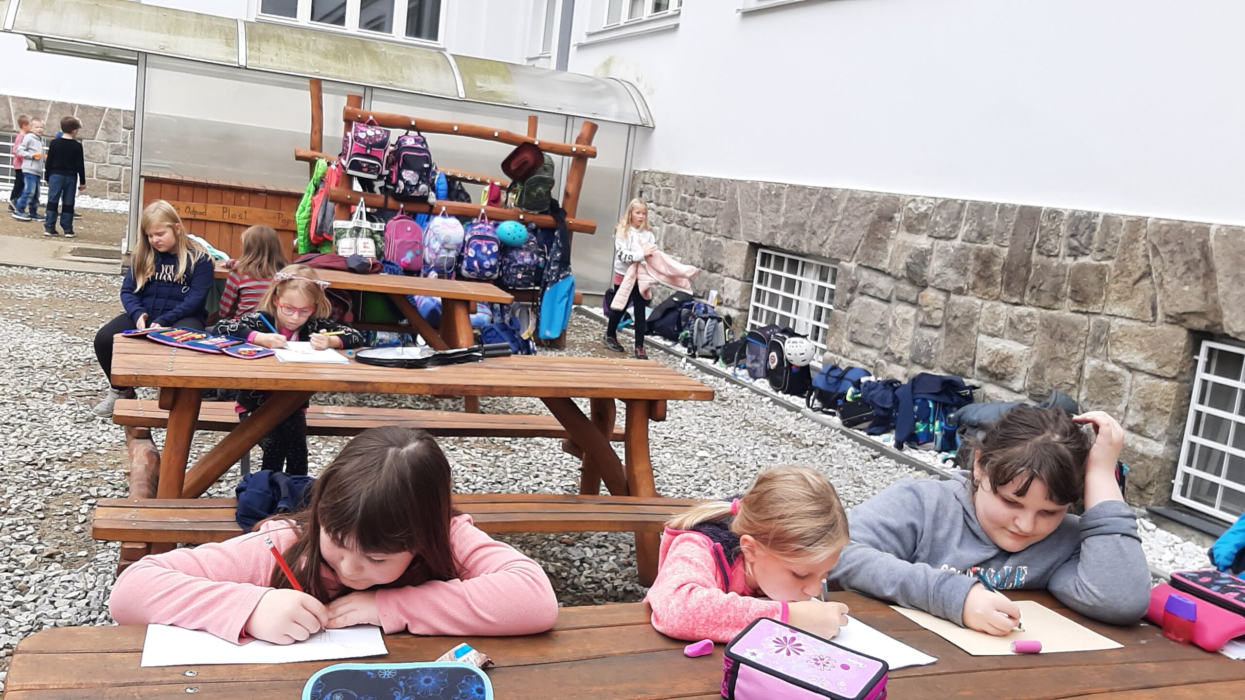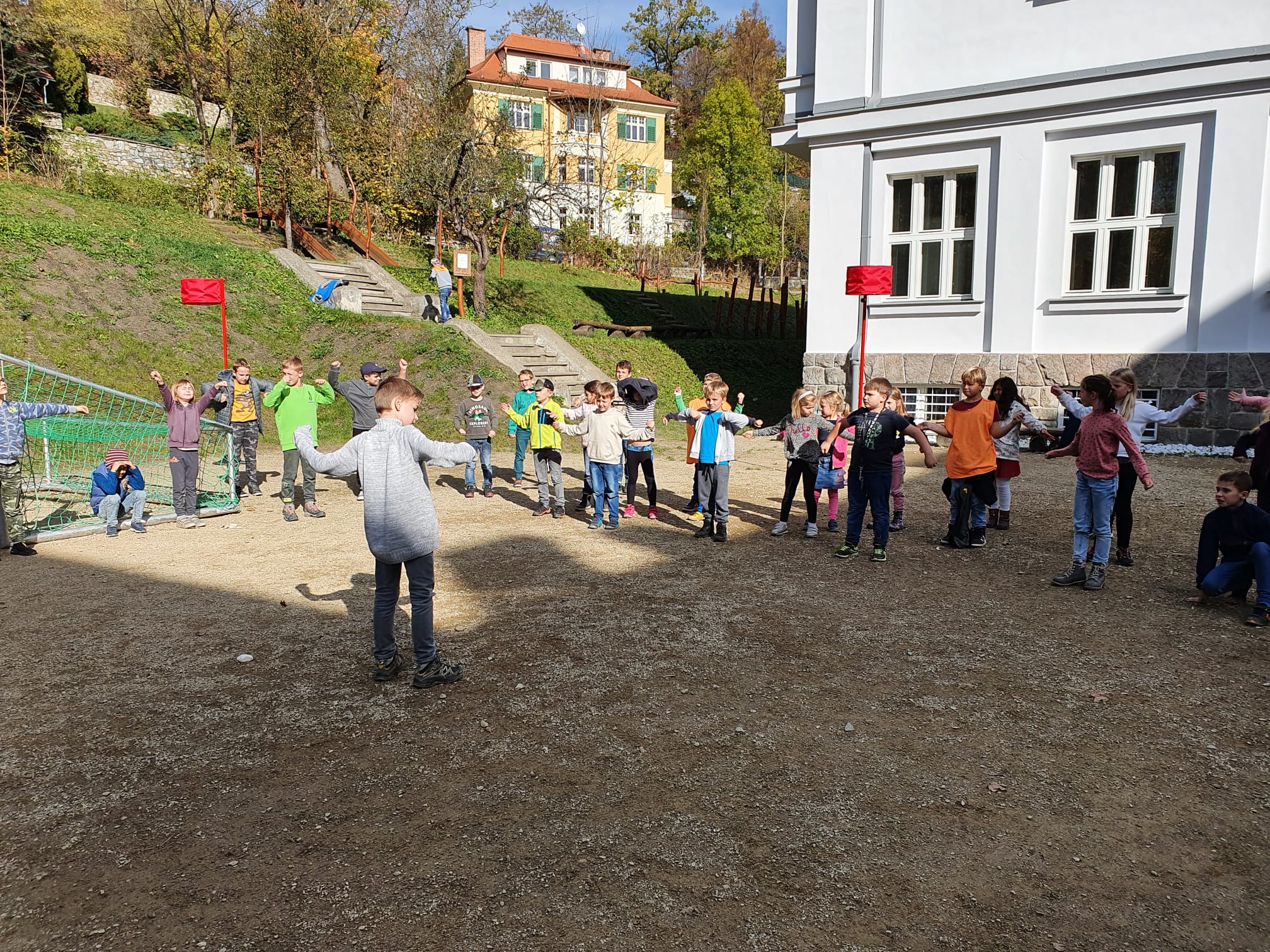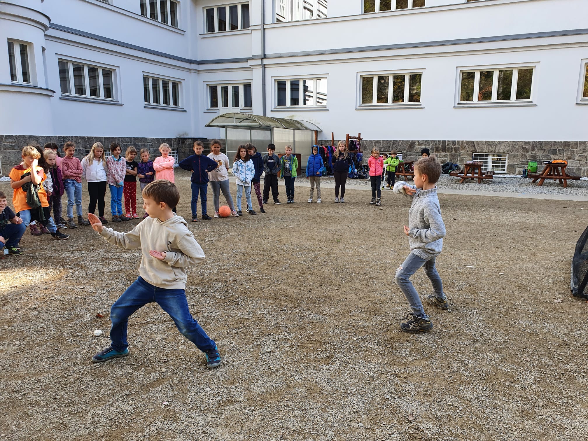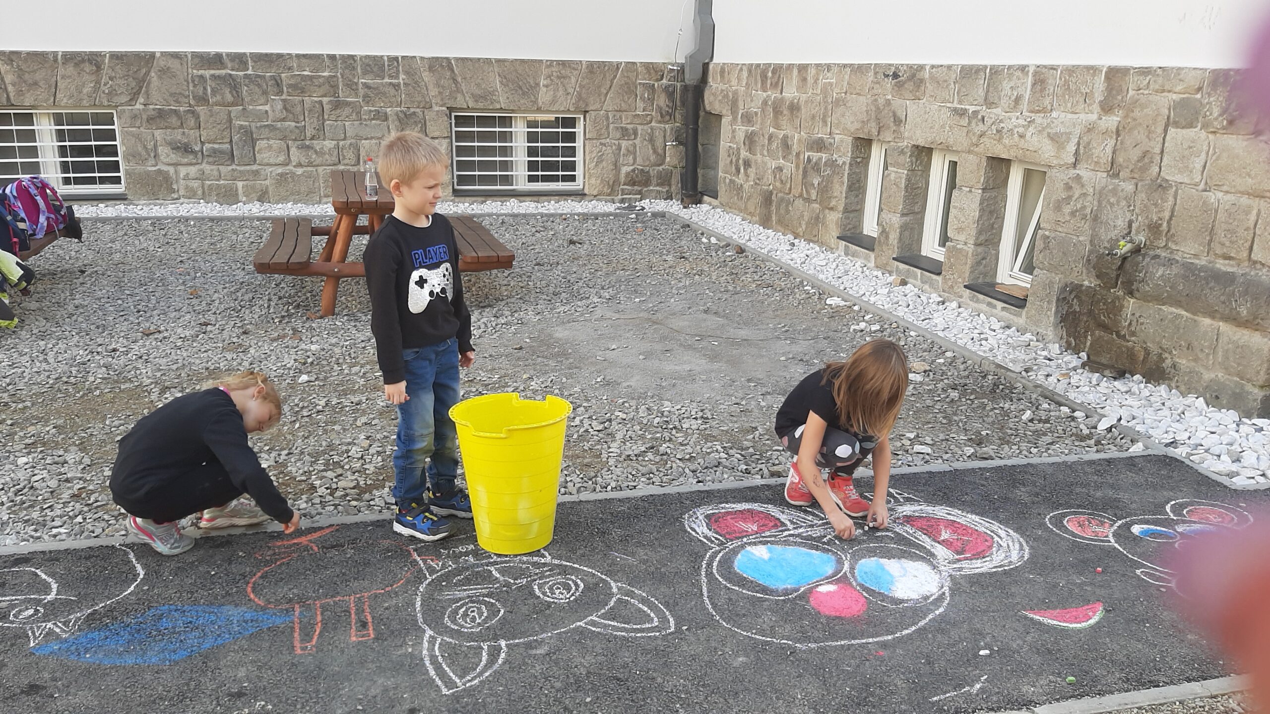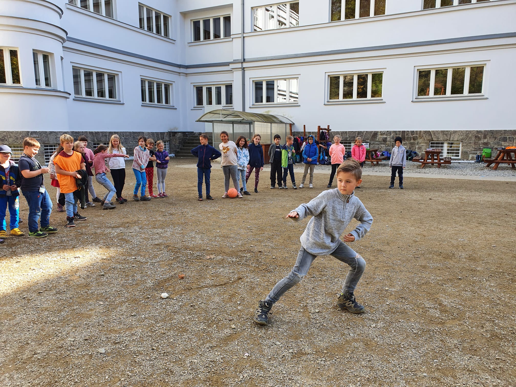 Krásné podzimní počasí nám umožnilo trávit čas na školním hřišti. Děti ze všech oddělení mají každý den nabídnuty sportovní aktivity, které si mohou vyzkoušet. Podzim na hřišti v areálu školy jsme si všichni užili.