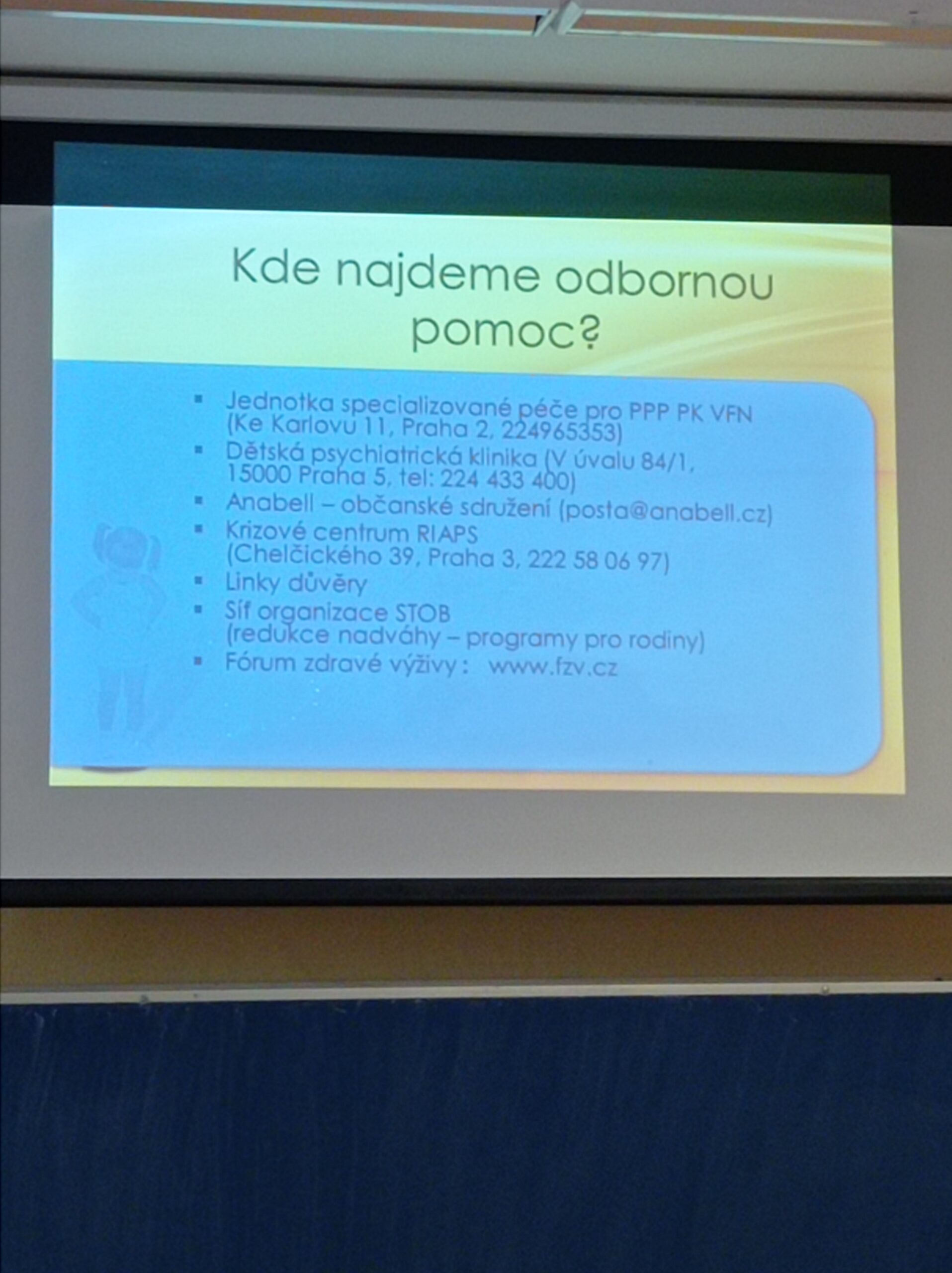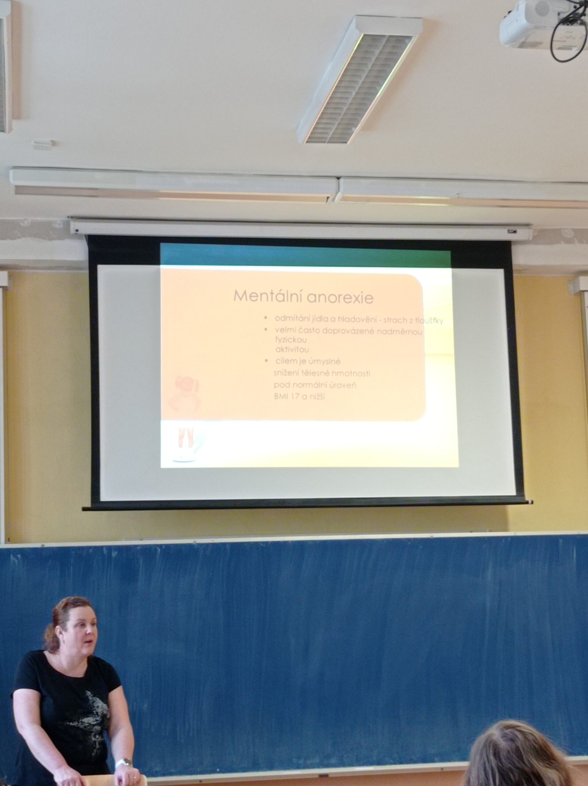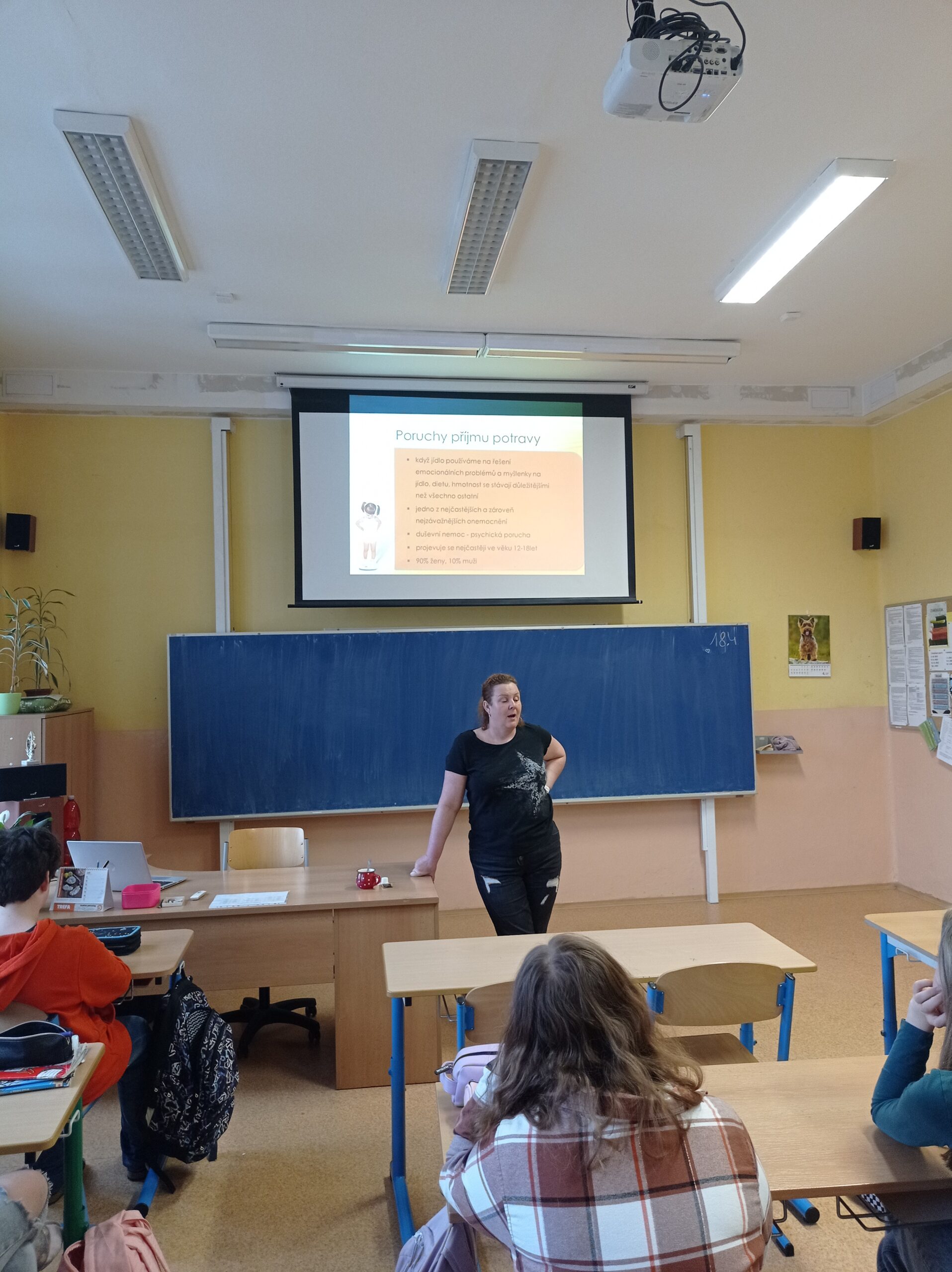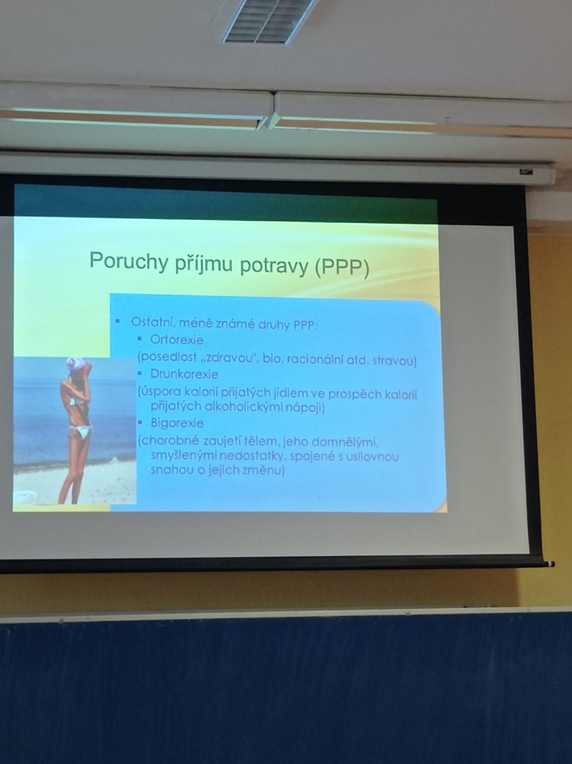 Dále se v sedmých ročnících uskutečnila beseda na téma Poruchy příjmu potravy. Beseda byla zaměřena na téma vzniku, rozvoje, rizik a dopadů známých poruch příjmu potravy – mentální anorexie, bulimie, záchvatové přejídání.