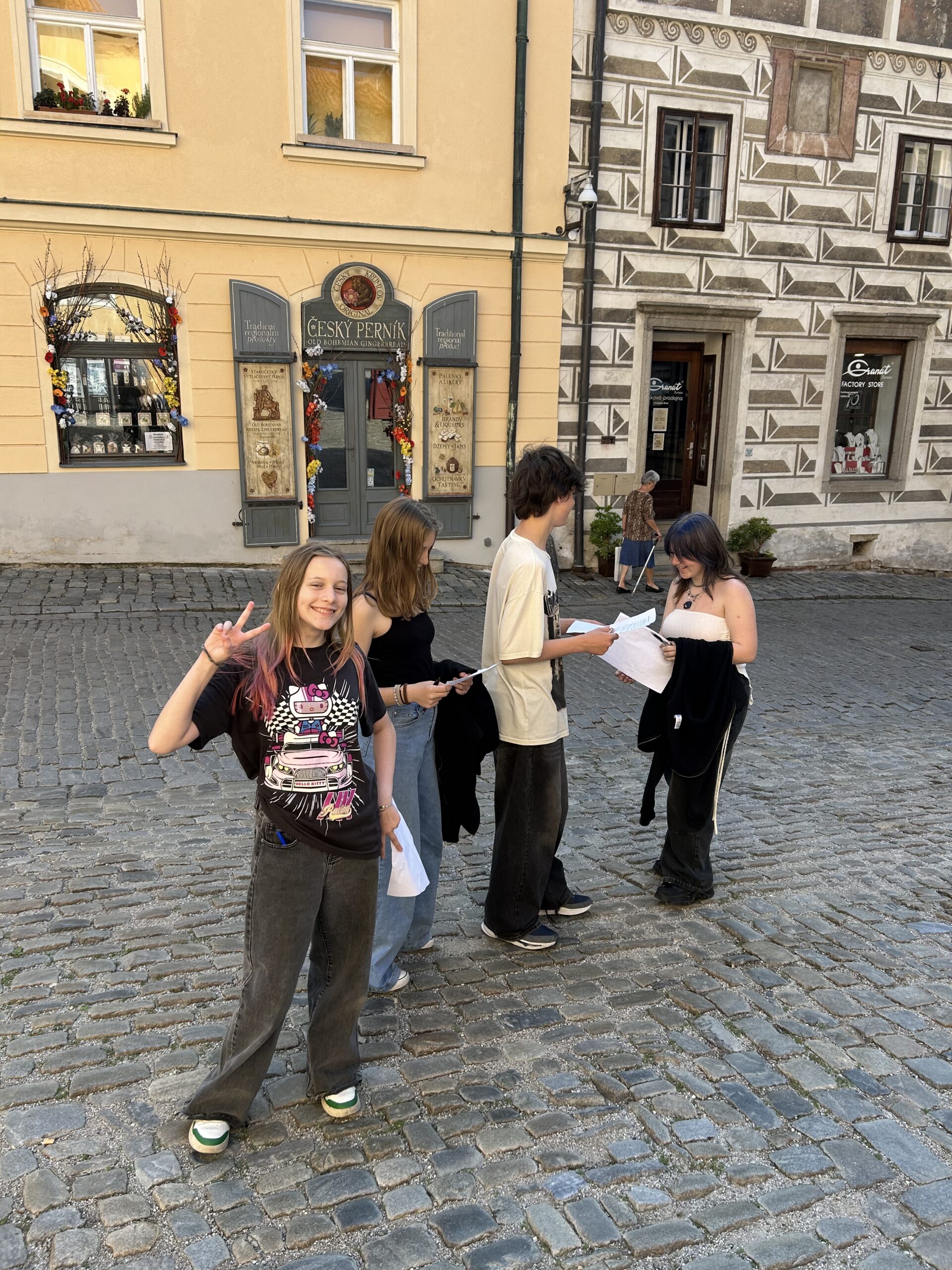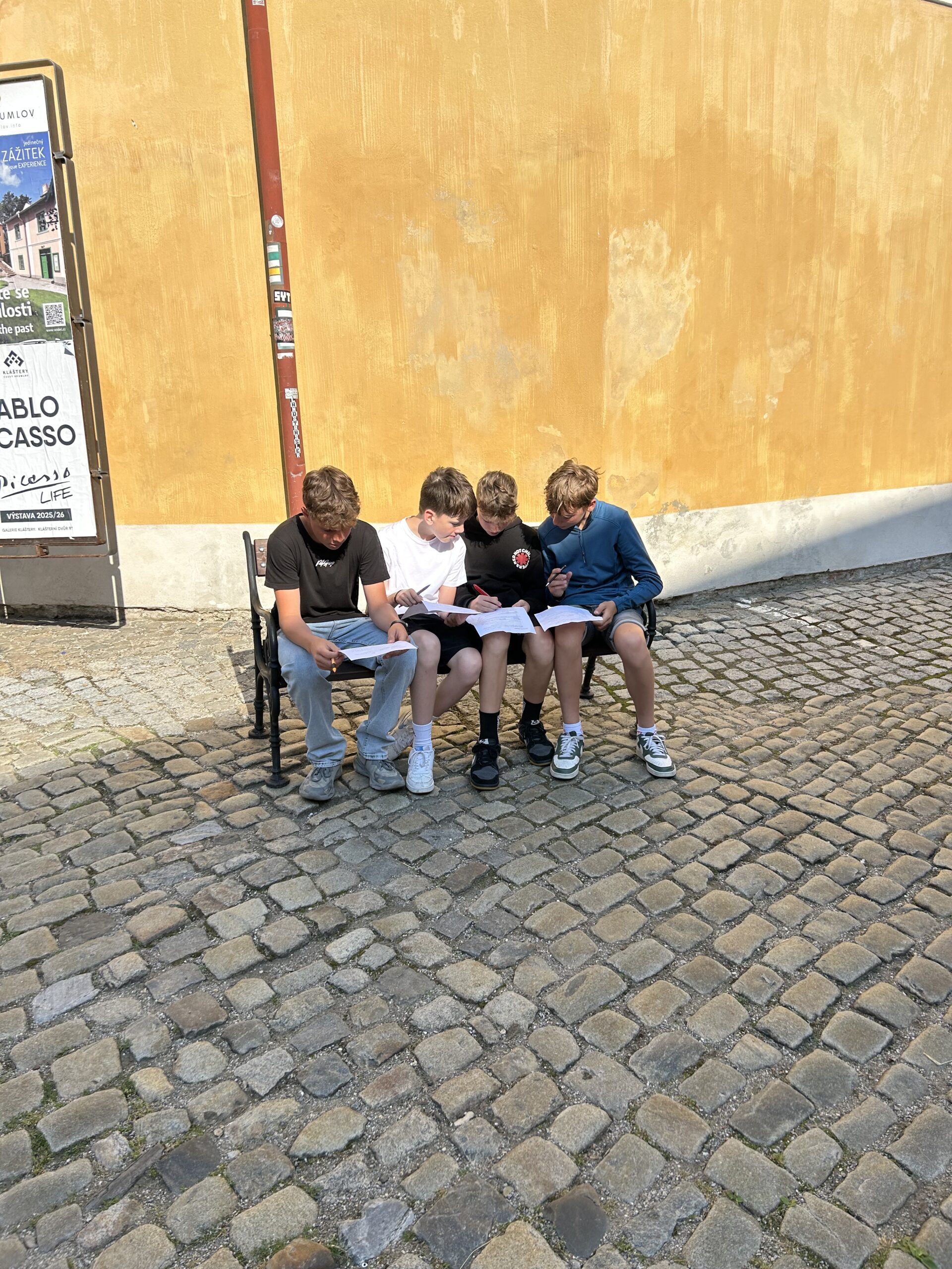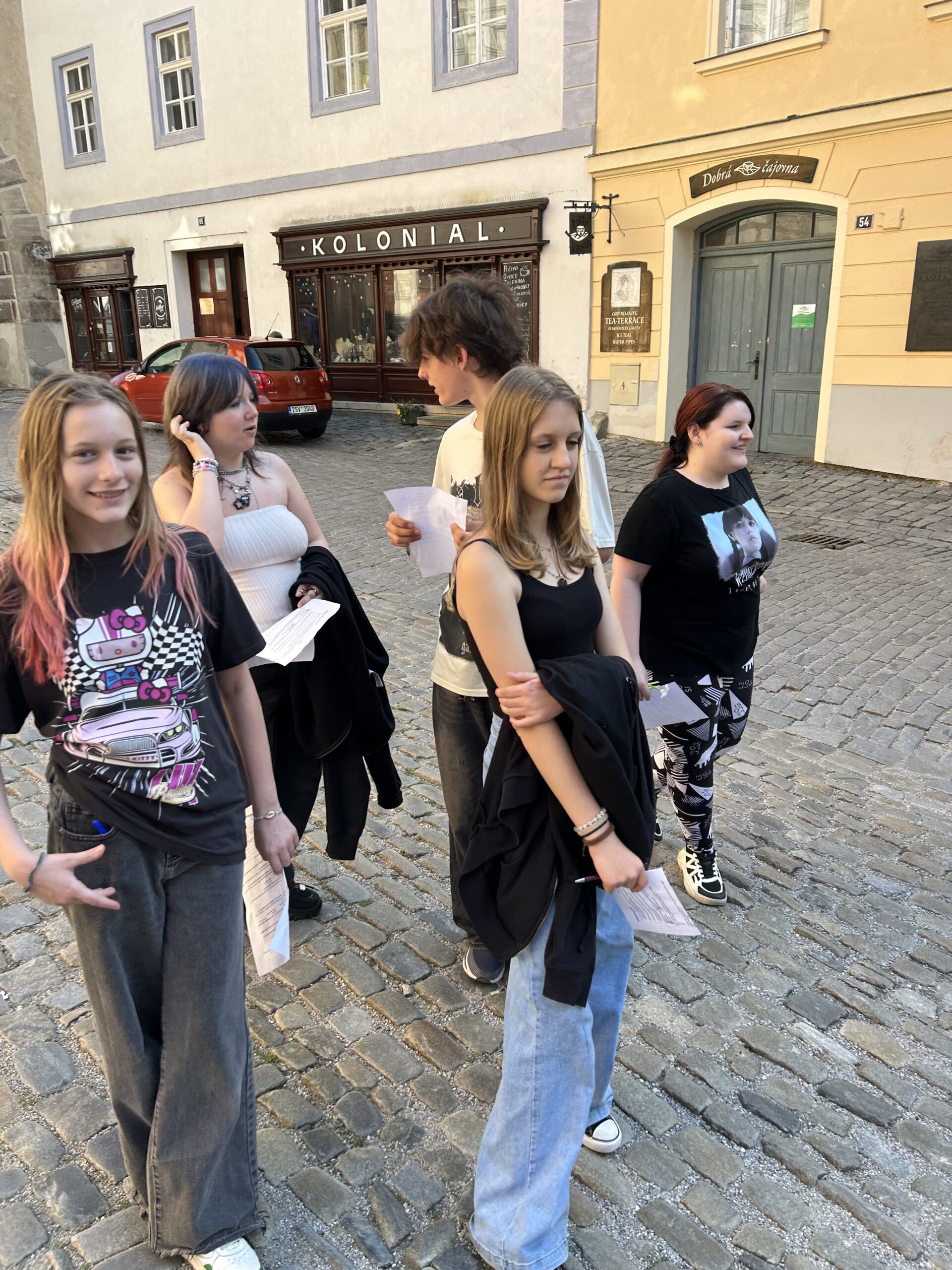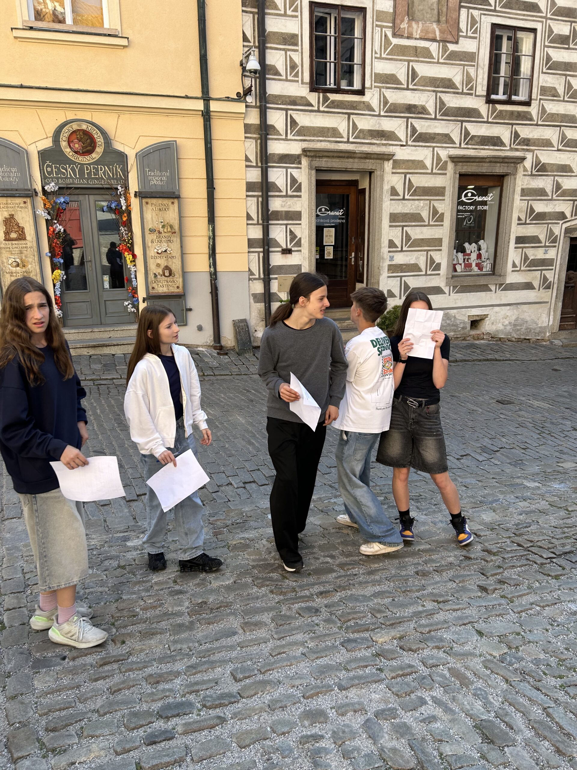Jednoho slunečného dne se třída 7. A vydala na poznávací procházku historickým centrem Českého Krumlova. Cílem výletu nebylo jen projít si město, ale pozorně vnímat detaily, které by běžný turista možná přehlédl – sgrafitovou výzdobu, architektonické prvky a symboliku, která oživuje stěny domů a ulic.