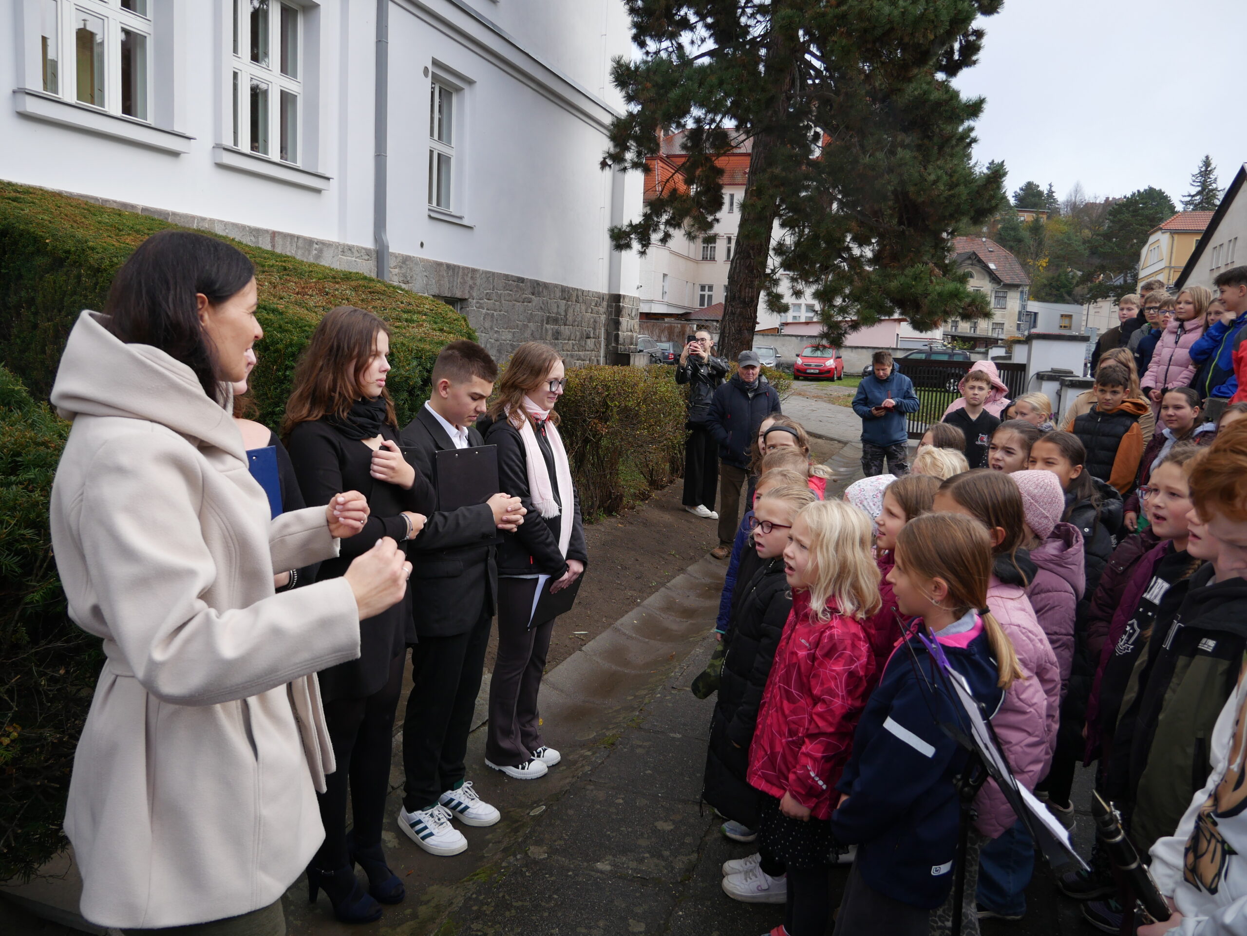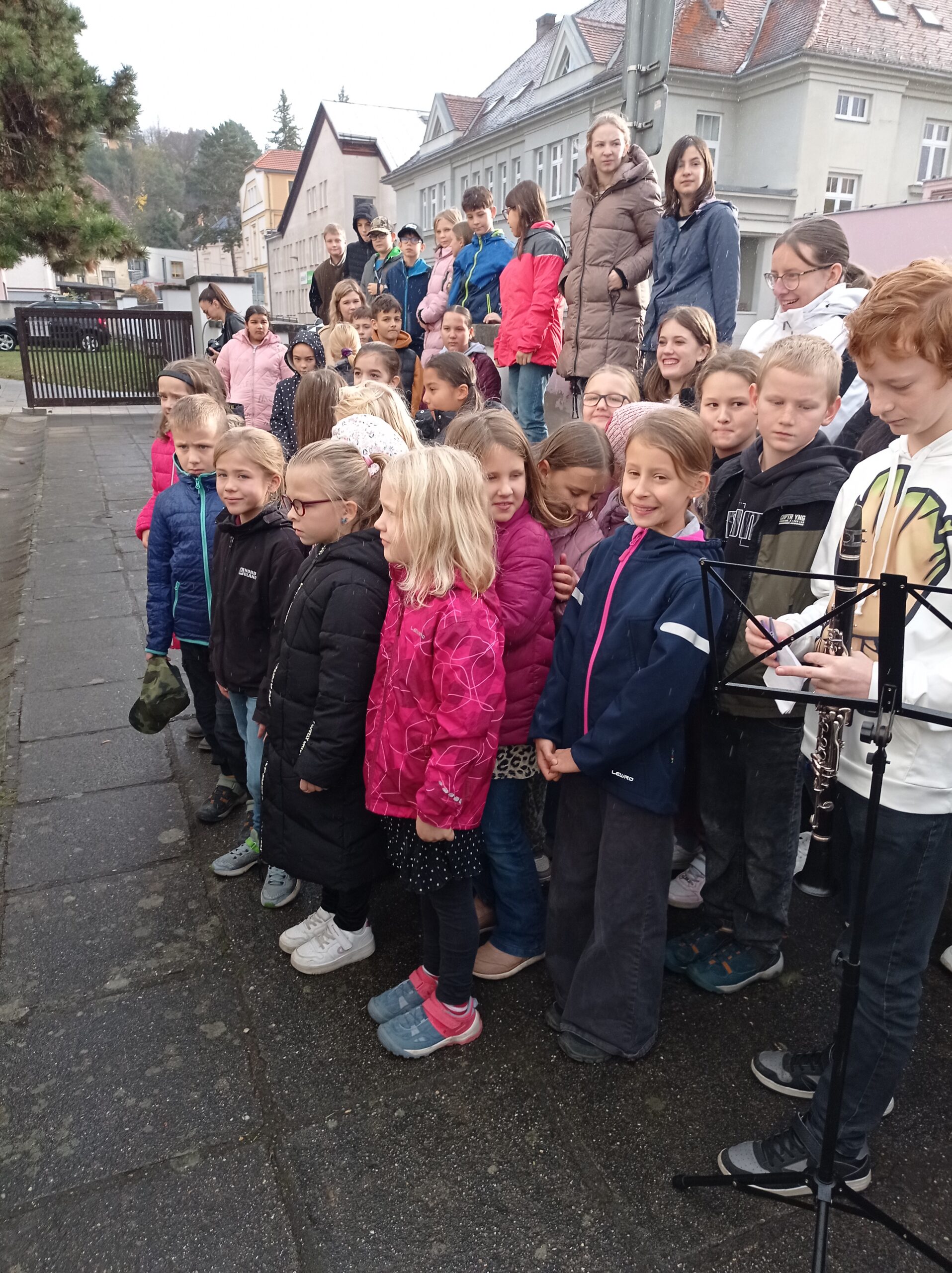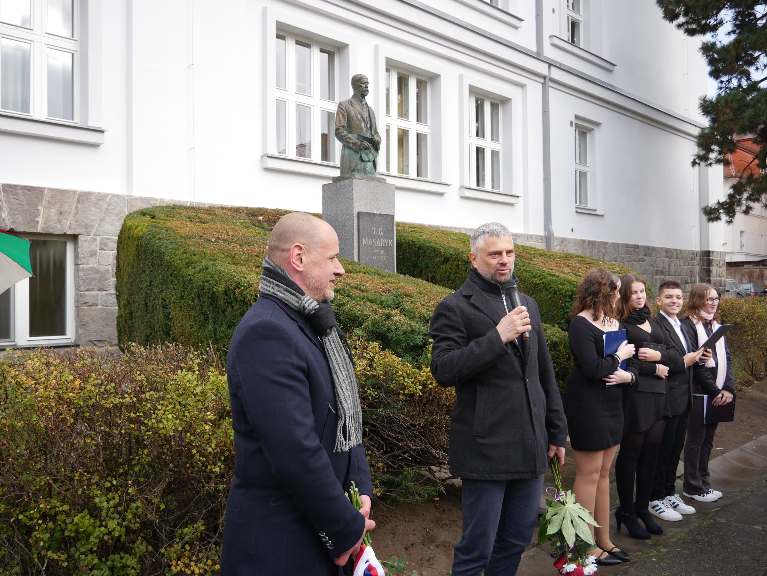 V pátek 24. 10. 2025 se u busty T. G. Masaryka před naší školou uskutečnila již tradiční vzpomínková akce k příležitosti 107. výročí vzniku samostatného Československa. Pietního setkání se zúčastnili starosta města Alexandr Nogrády, ředitel školy Mgr. Josef Haláček, učitelé a žáci naší školy. Celý program zahájil školní sbor českou hymnou. Sofie Hanzlíková, Kristýna Štěpánková, Michal Kaločai a Veronika Pěstová si pro přítomné připravili krátké literární pásmo. Zazněly básně a úryvky Masarykových myšlenek. Na závěr jsme si poslechli lidovou píseň Ach synku, synku v podání pěveckého sboru, na klarinet zahrál Jakub Cifreund.