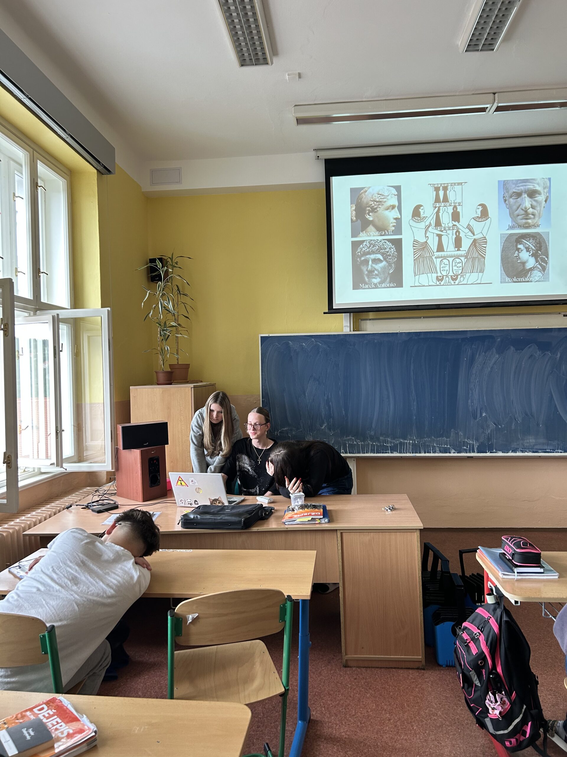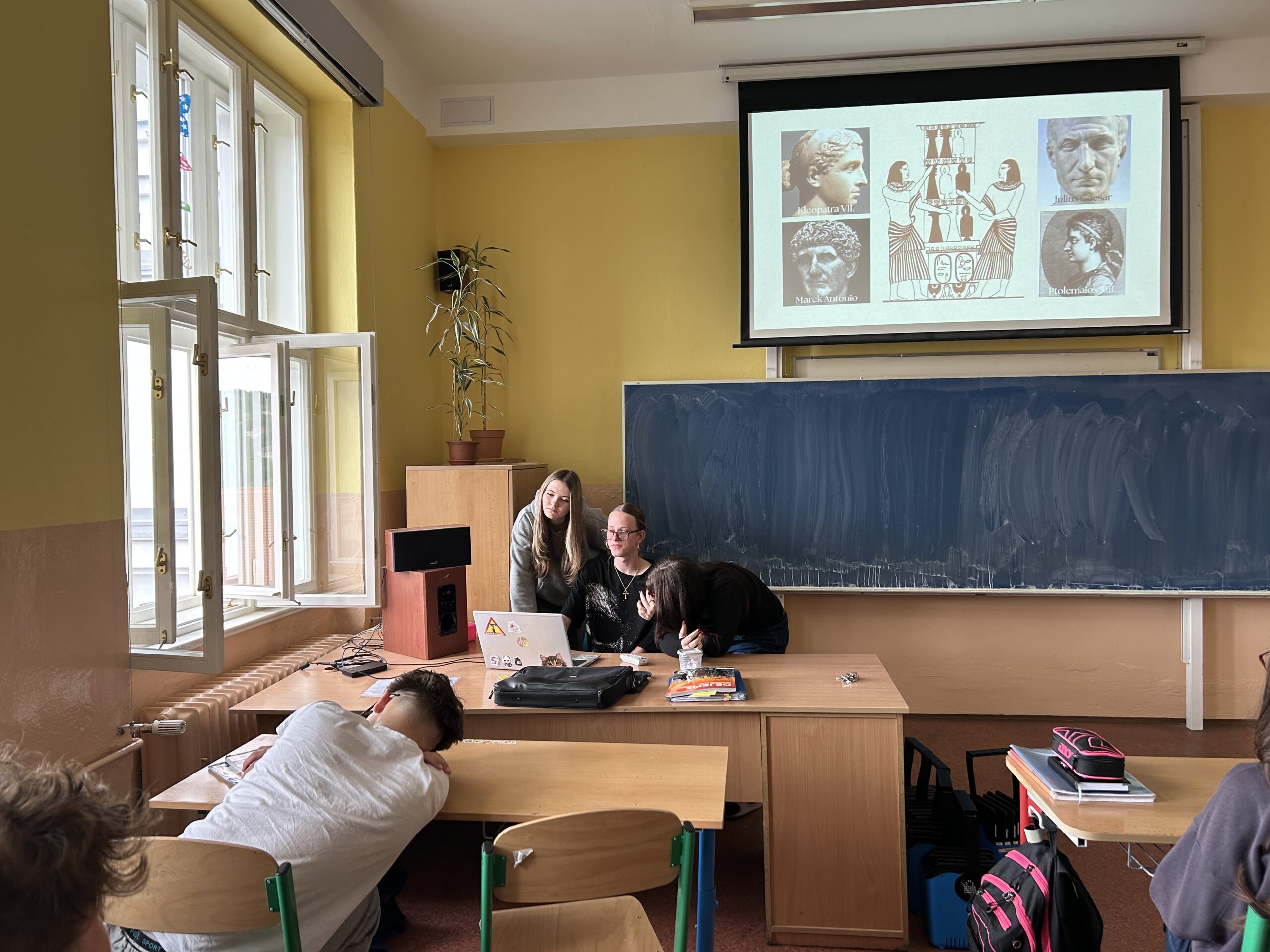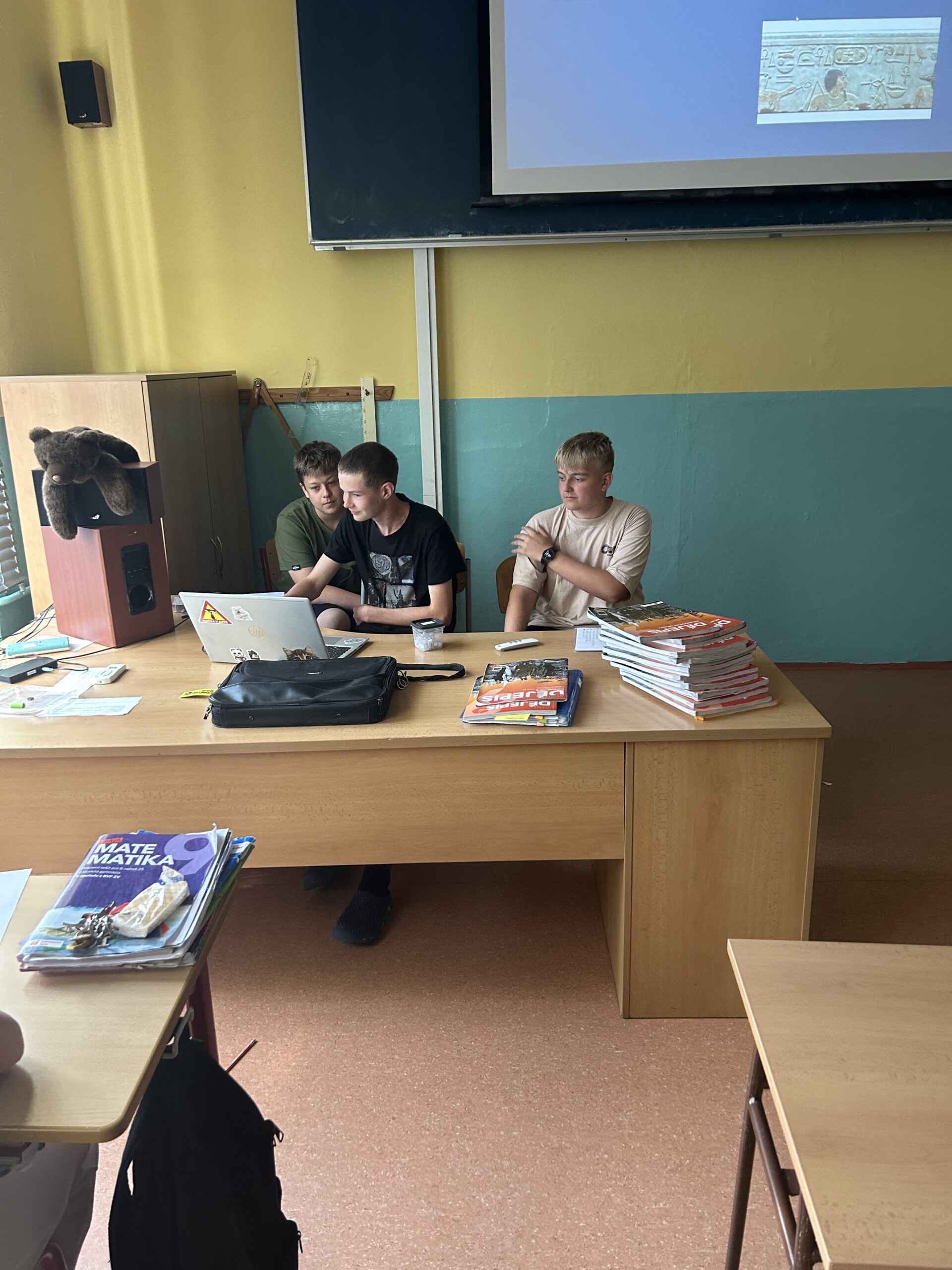 Na konci školního roku se v devátých ročnících odehrál nevšední výukový projekt, ve kterém se role učitelů na chvíli ujali samotní žáci. Vždy ve dvojicích nebo trojicích si připravili vlastní výukové bloky pro své spolužáky – a to na téma dějin lidstva od pravěku až po moderní dobu.