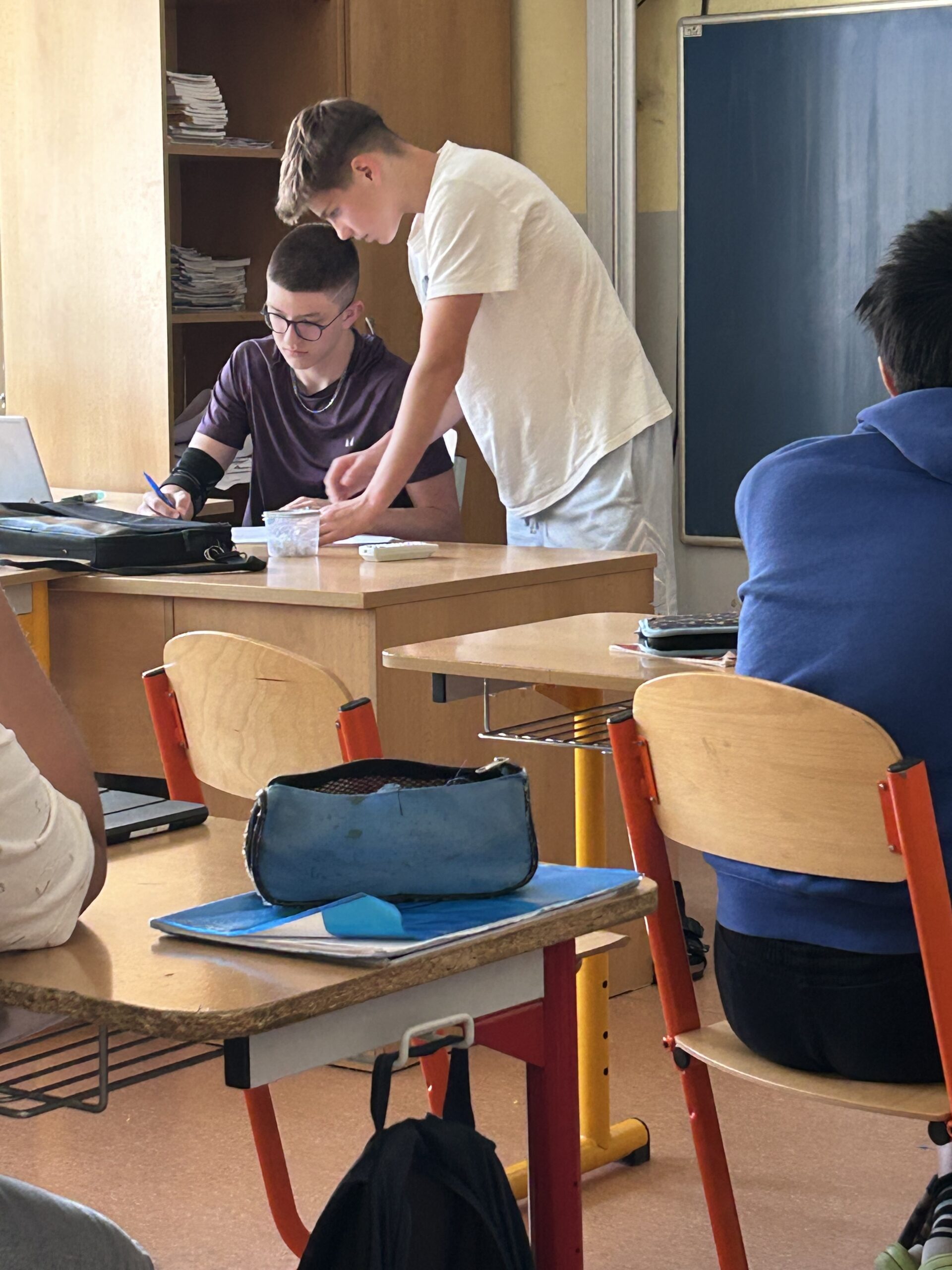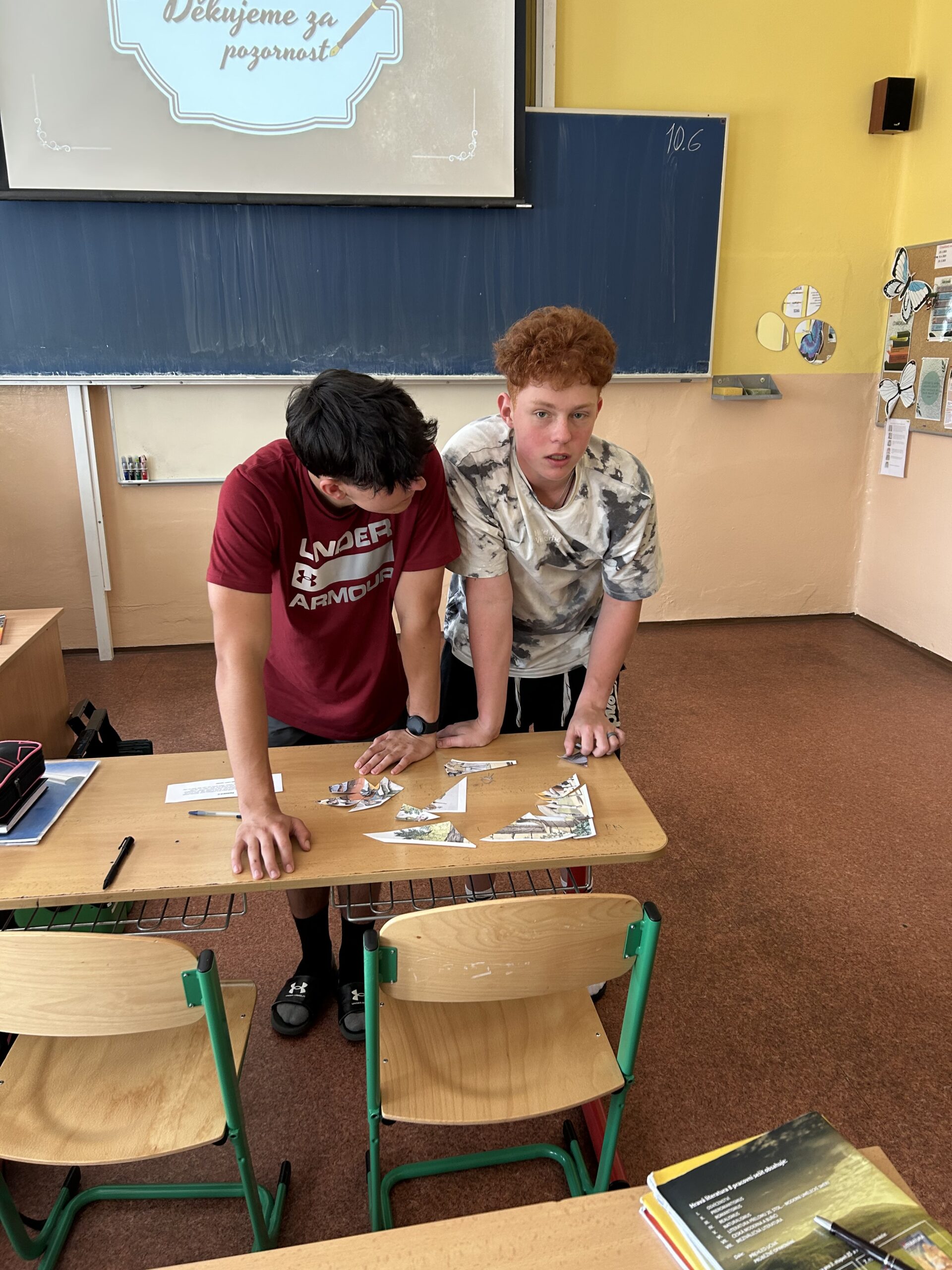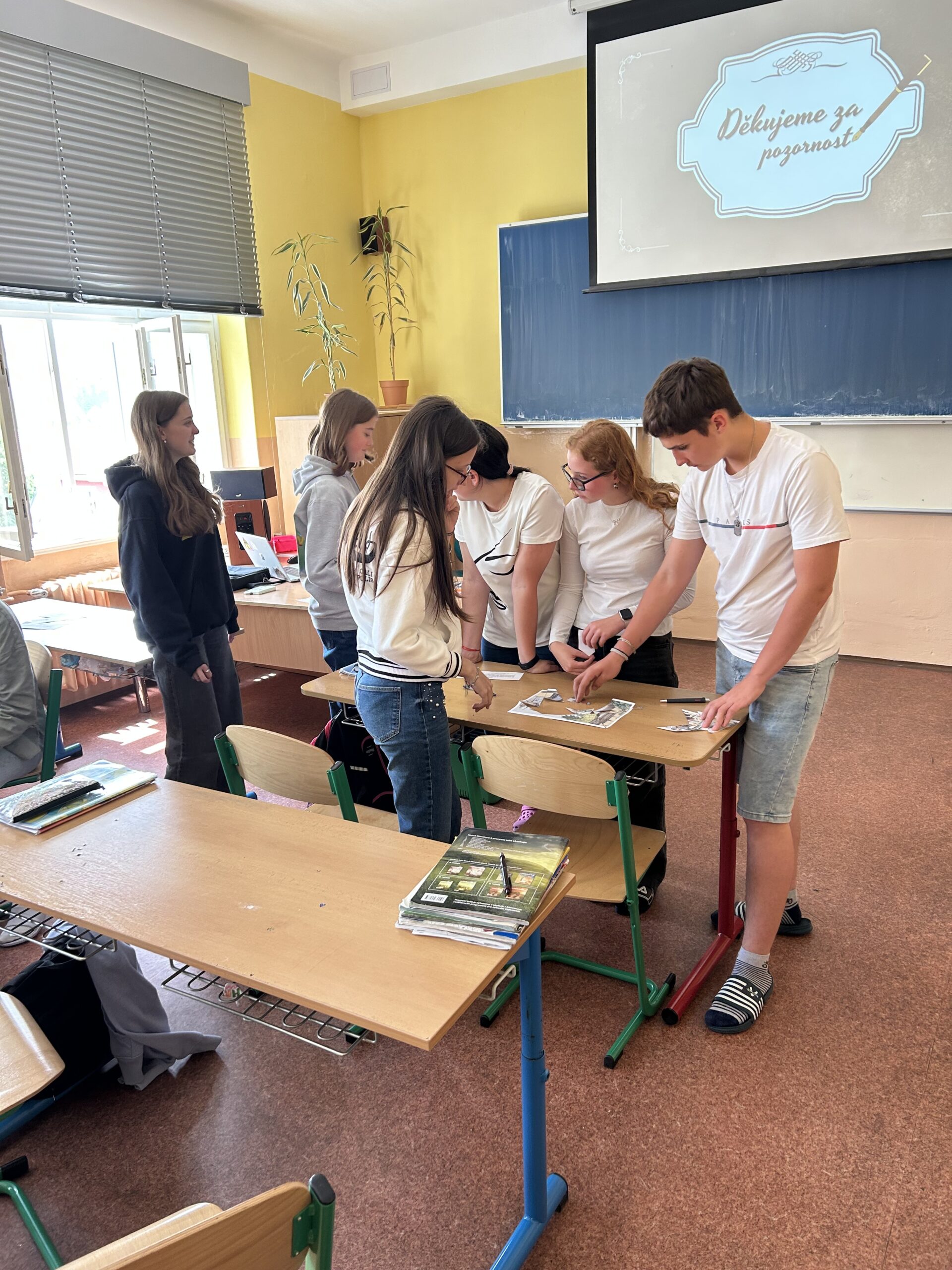 Na konci školního roku se v devátých ročnících odehrál nevšední výukový projekt, ve kterém se role učitelů na chvíli ujali samotní žáci. Vždy ve dvojicích nebo trojicích si připravili vlastní výukové bloky pro své spolužáky – a to na téma dějin lidstva od pravěku až po moderní dobu.