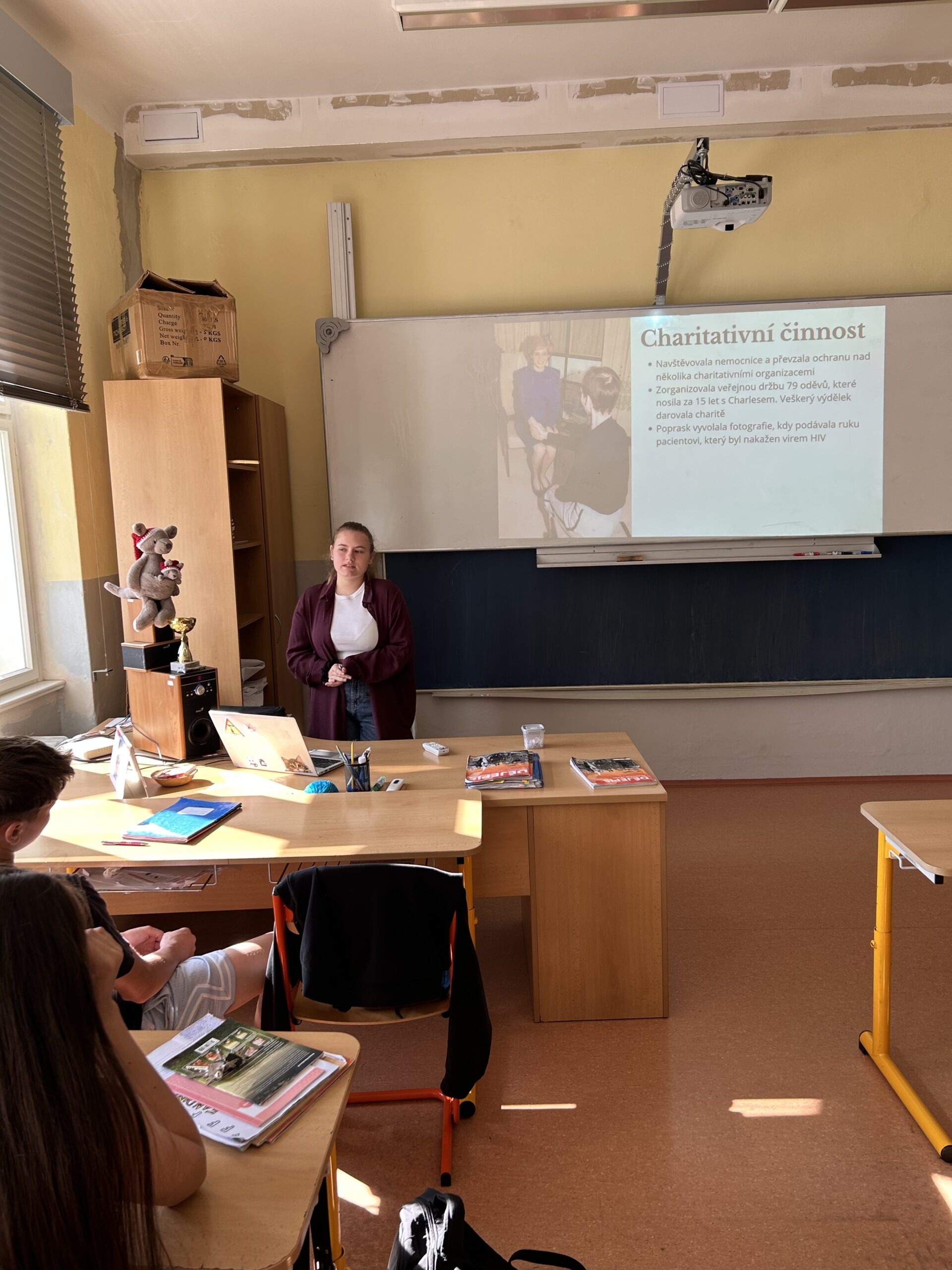 Další skupina zaujala zpracováním viktoriánské Anglie, kde žáci představili nejen styl života bohaté vrstvy, ale i každodenní realitu chudých londýnských čtvrtí. Zajímavostí byla také prezentace o umění války, kde se mluvilo mimo jiné i o první známé biologické zbrani – případu, kdy byl při obléhání města proti nepříteli použit voják nakažený morem.