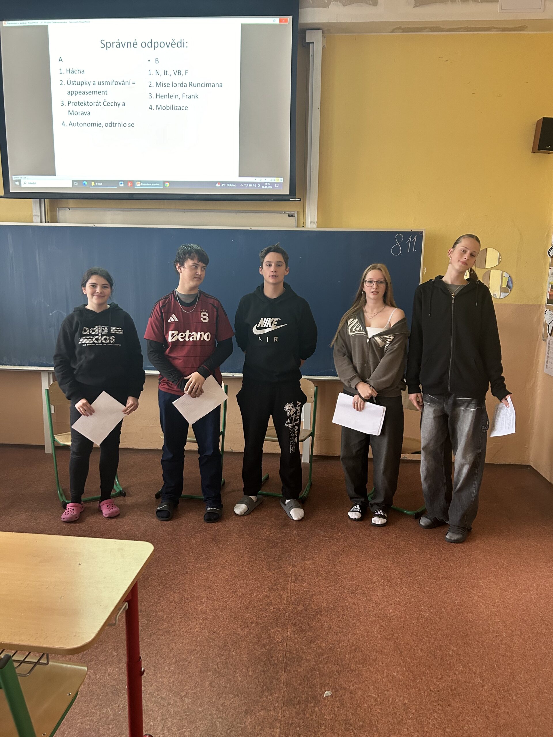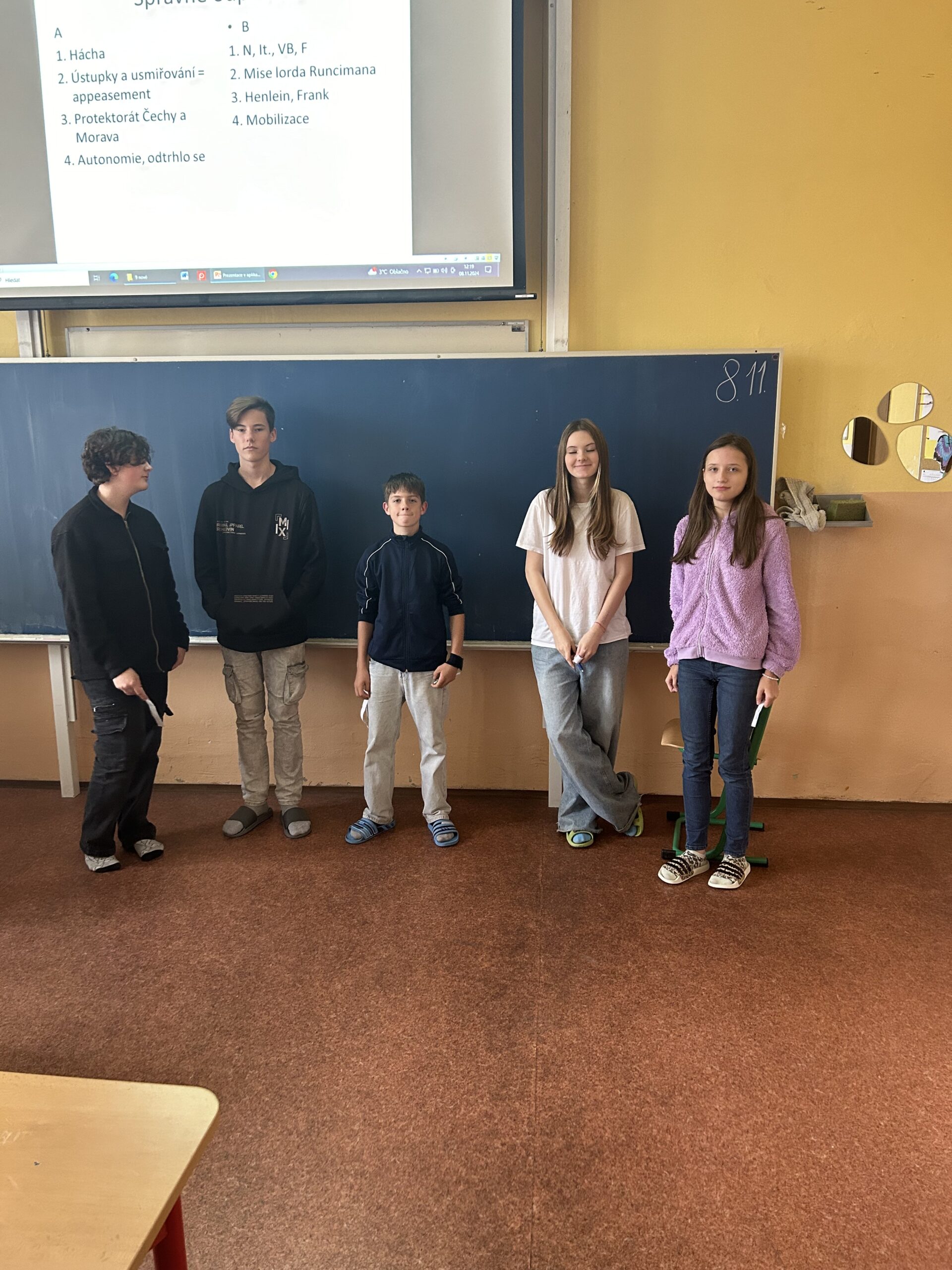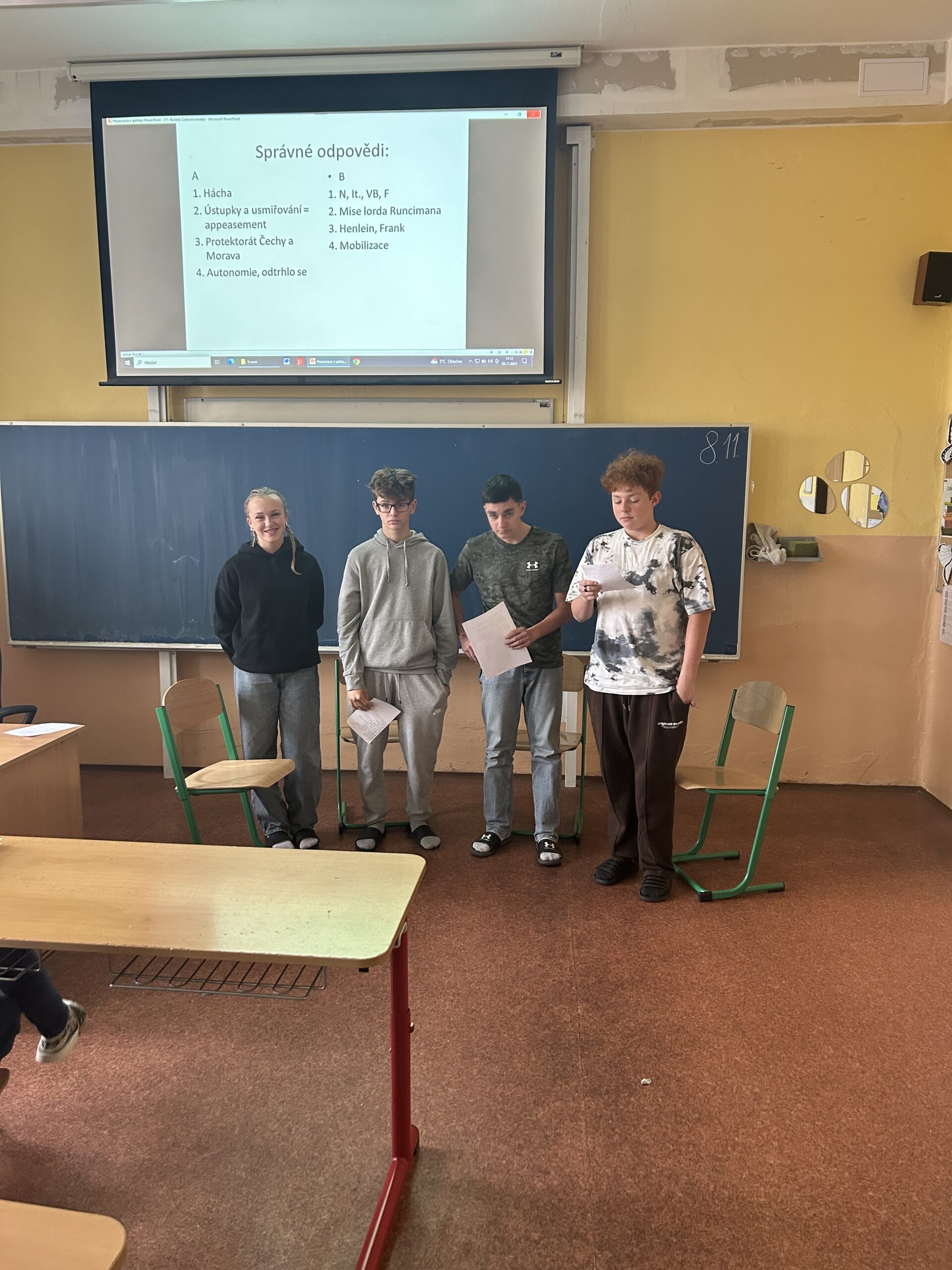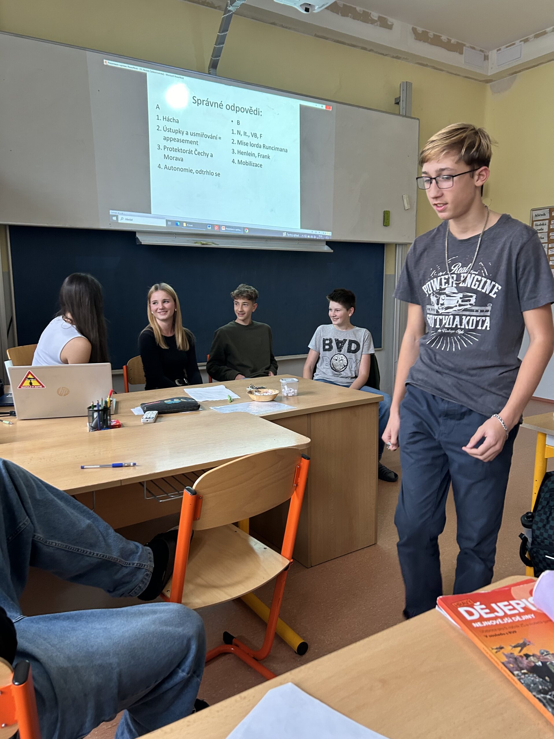 Vše se naučili zábavnou formou. Po výkladu, který byl doplněn dokumentárním filmem, žáci hledali podrobné informace na iPadech. Ve skupinách si připravili scénář pro scénku s názvem Mnichovská dohoda, rozdělili si role a nacvičovali. V další hodině předvedli svou scénku spolužákům.