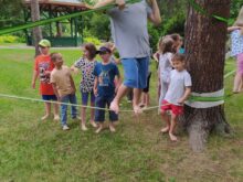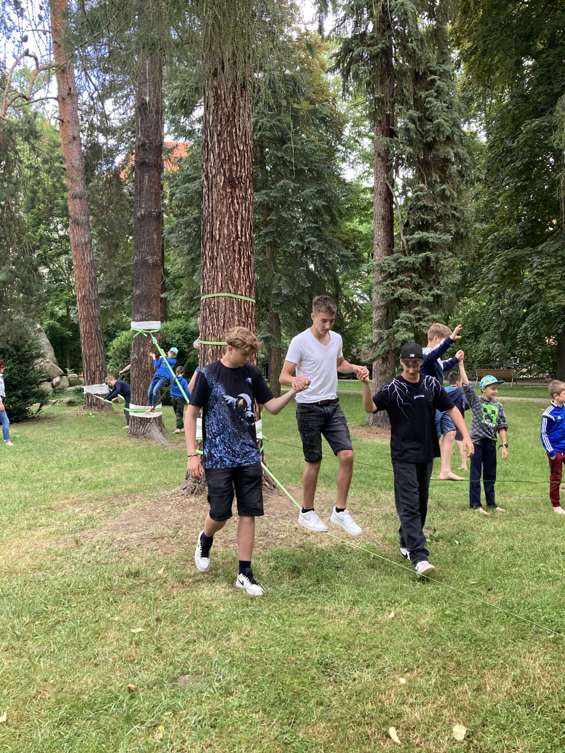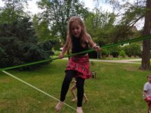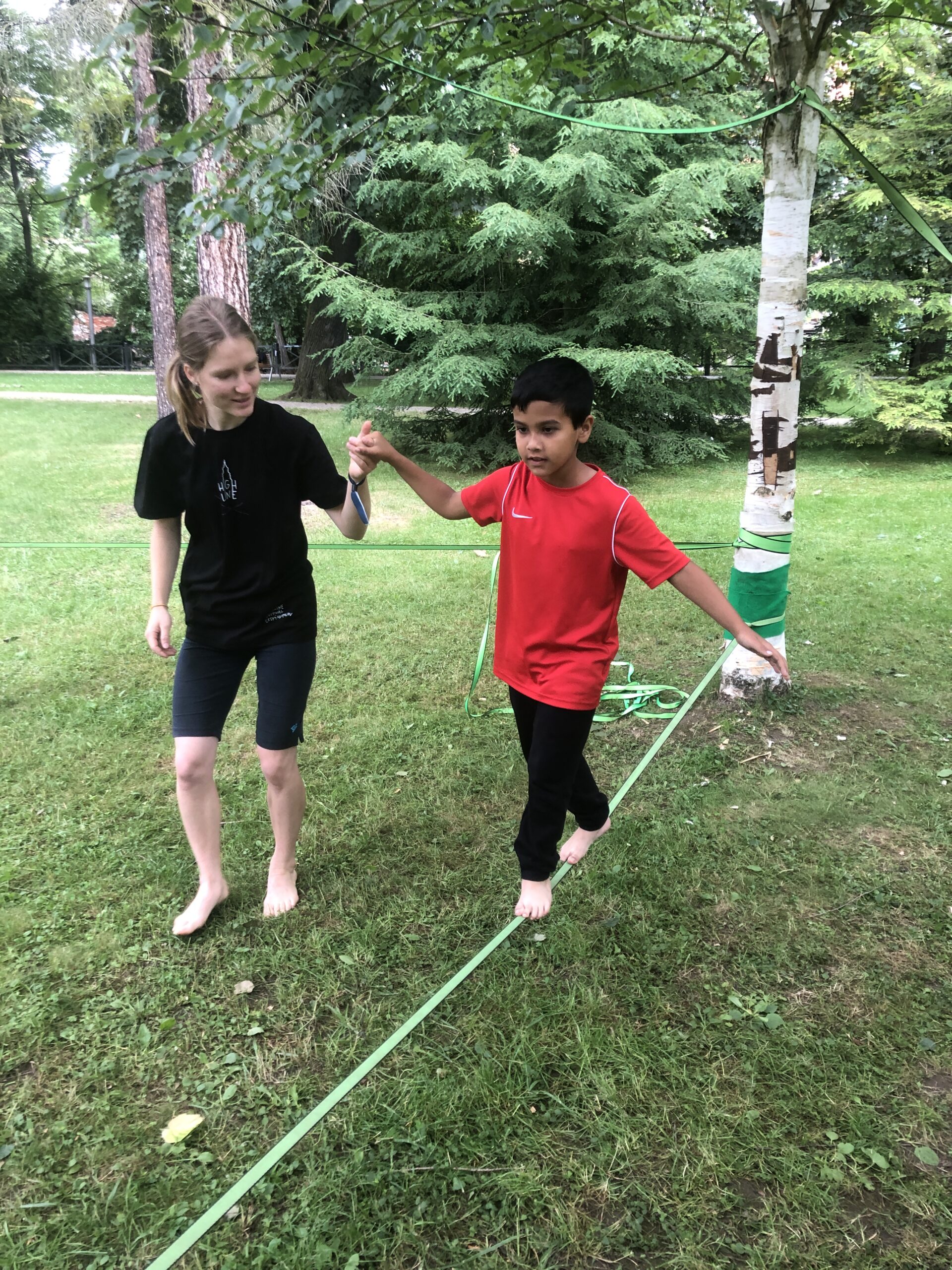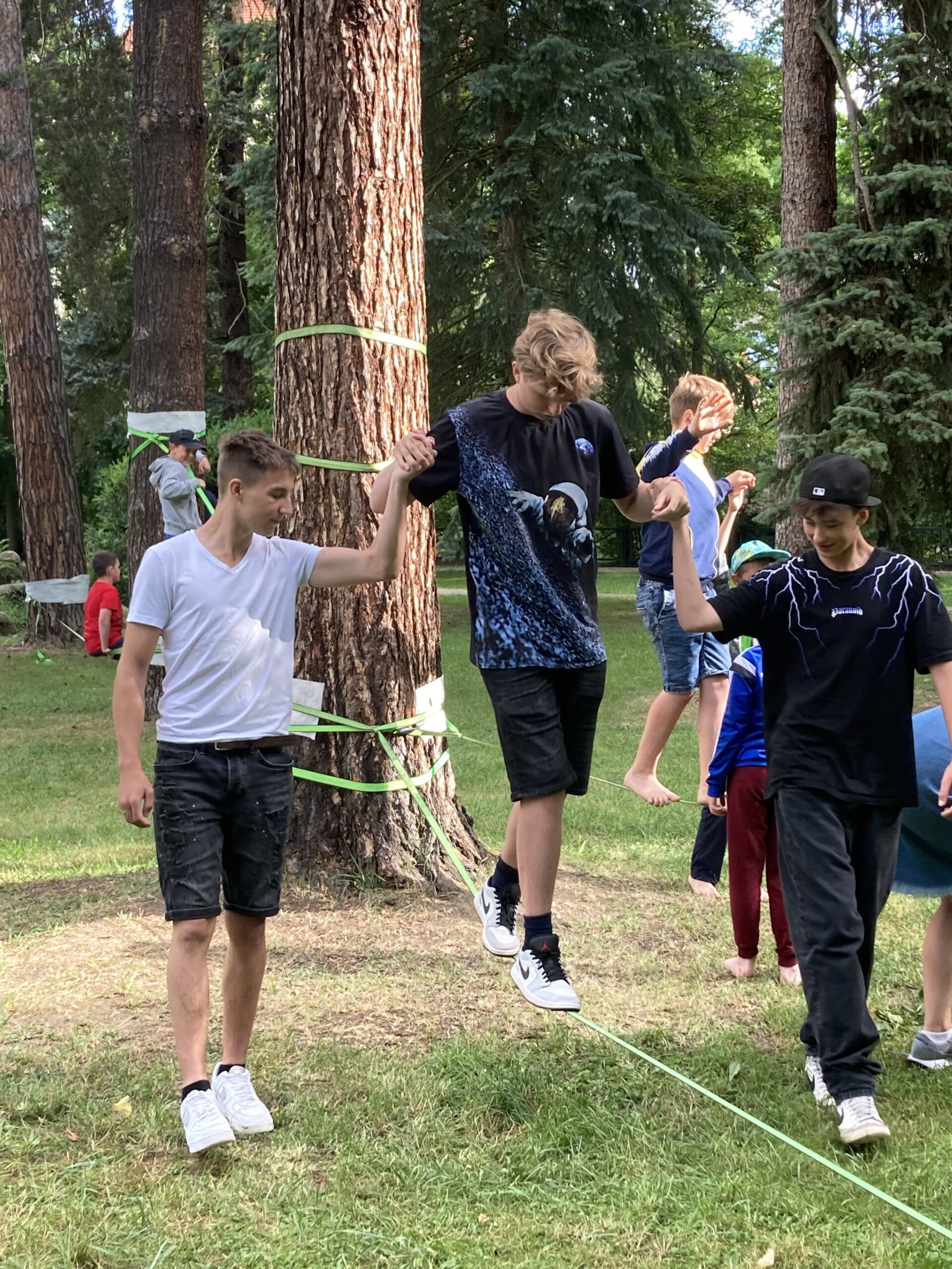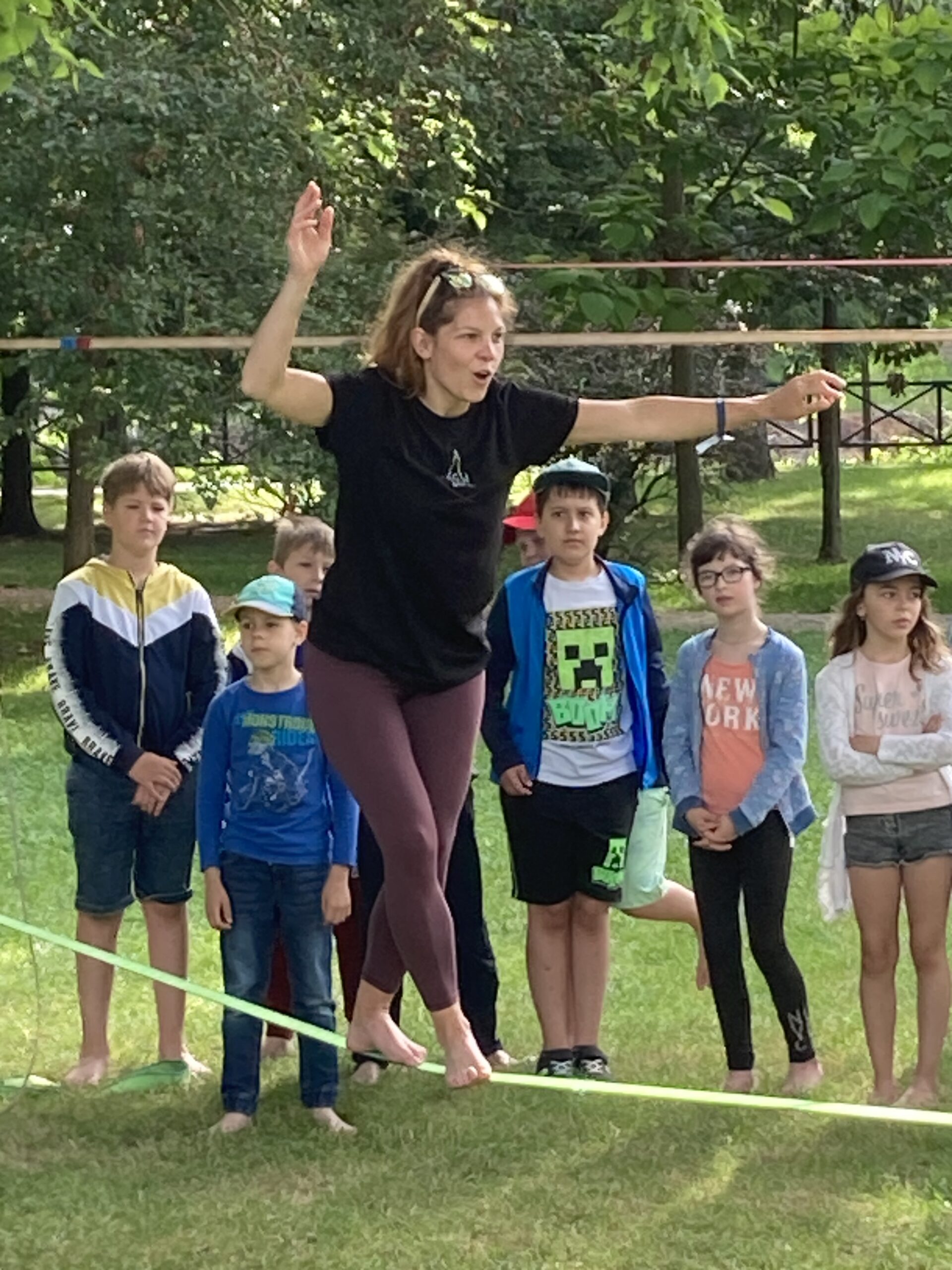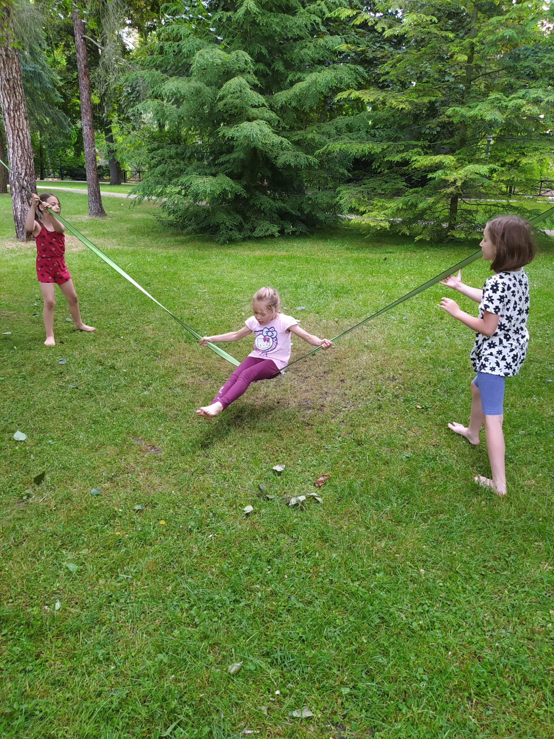 V pátek 23. 6. navštívilo několik tříd Městský park, kde se konala ukázka lezení a balančních cvičení na lajnách – Slackline akademie pro školy v rámci Highline Festivalu Český Krumlov 2023. Děti si mohly vyzkoušet, jak je náročné se na lajnu nejen dostat, ale i udržet rovnováhu a přejít ji. Byly nadšené, trénovaly o sto šest a z parku se jim ani nechtělo. Ze starších ročníků někdo odvahu a zájem měl, někdo pouze sledoval výkony ostatních.